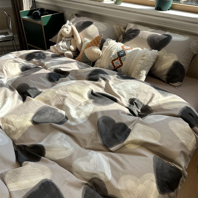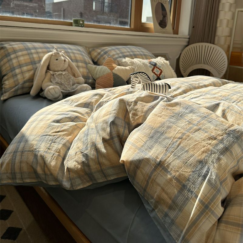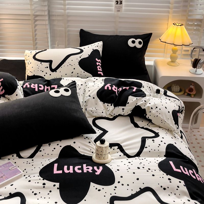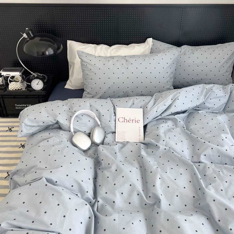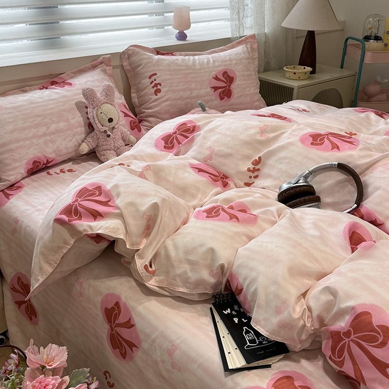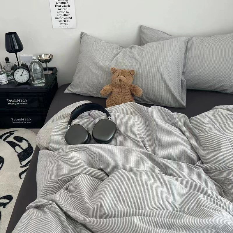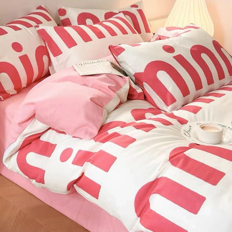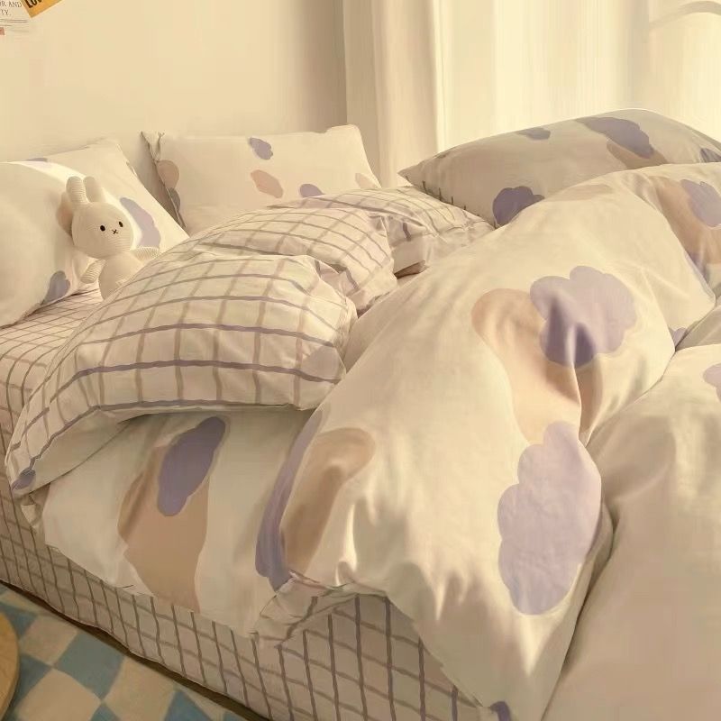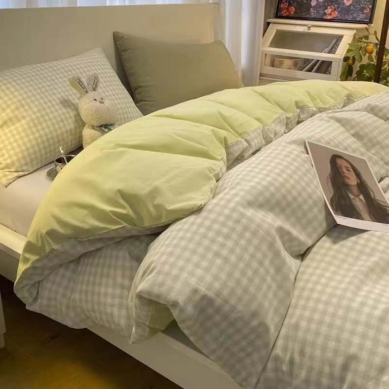 > 高端轻奢JK四件套简约床单被套床上水洗棉学生宿舍单双人四季通用