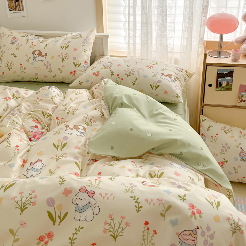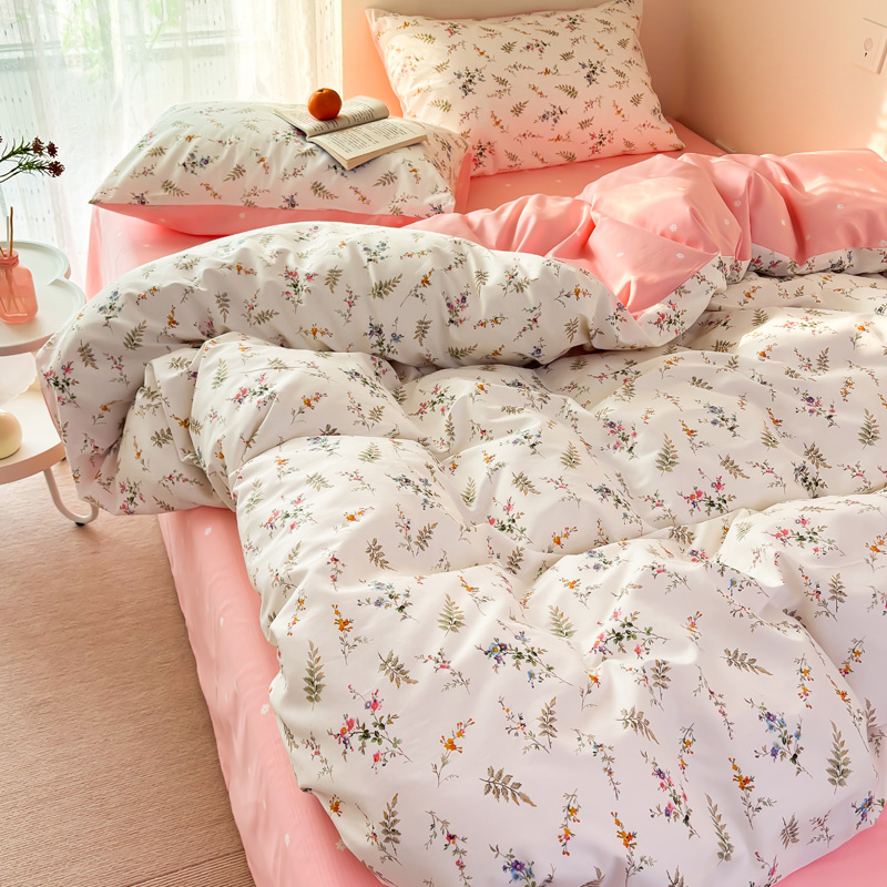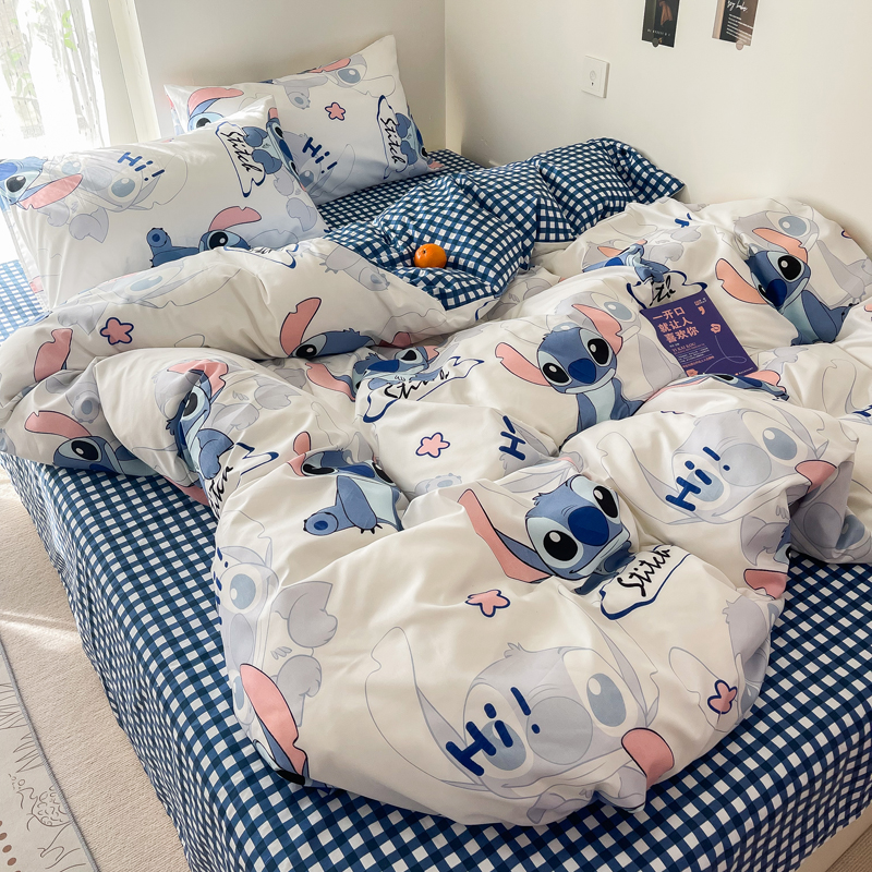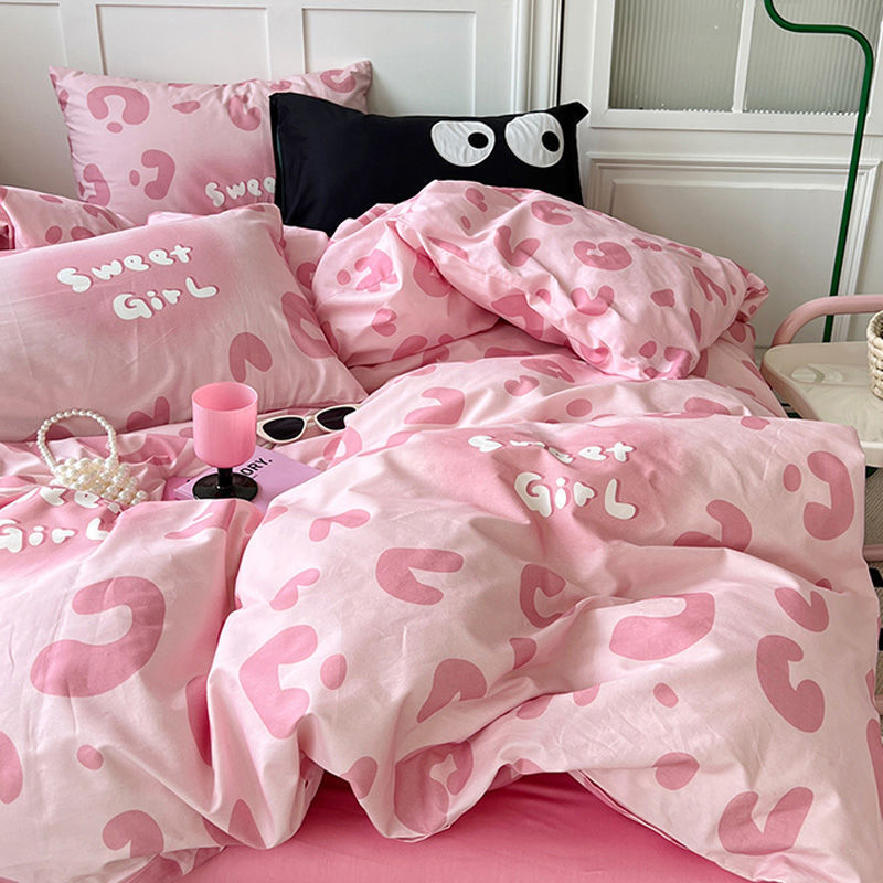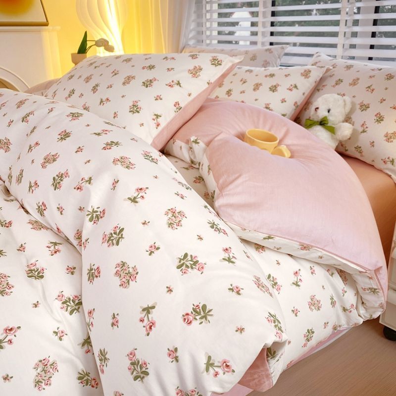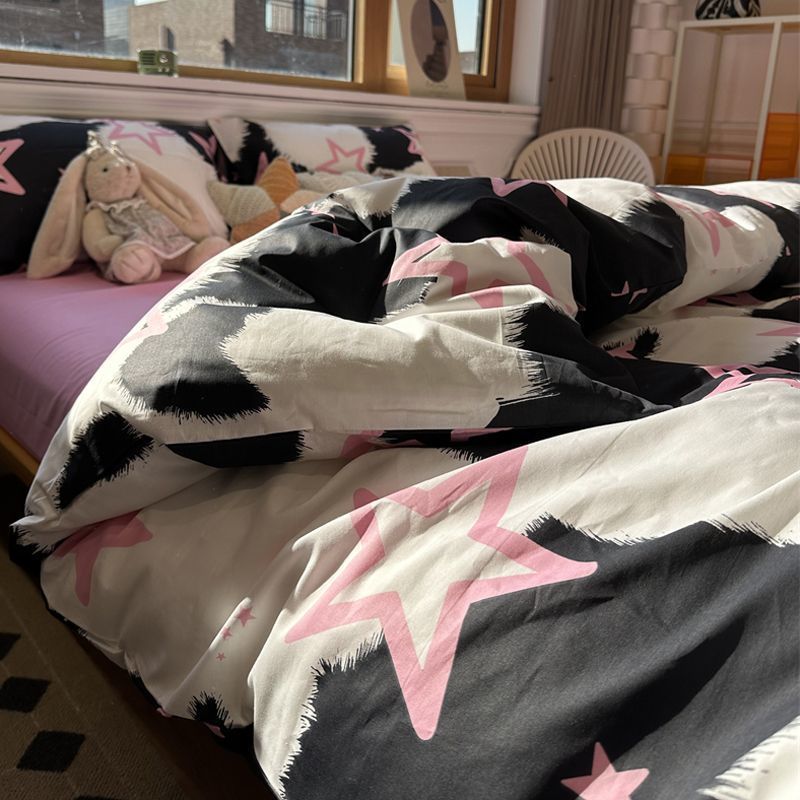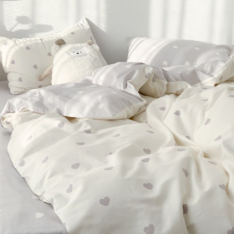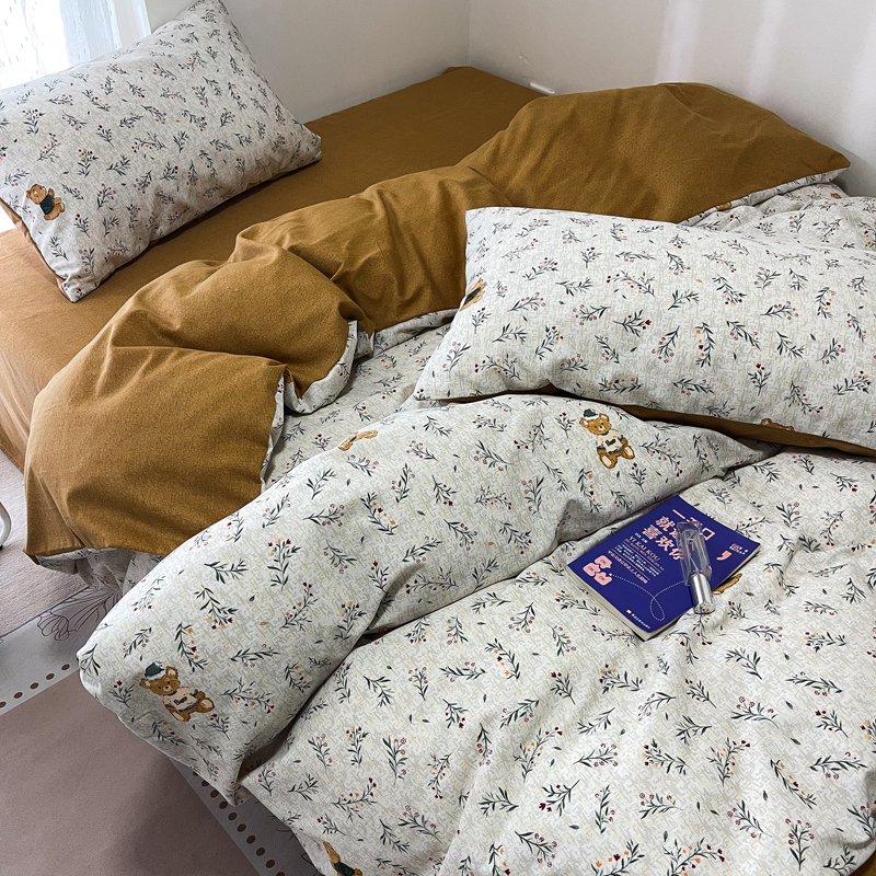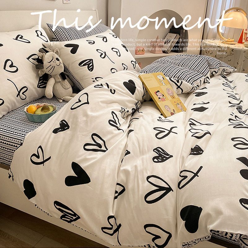 > 高端轻奢JK四件套简约床单被套床上水洗棉学生宿舍单双人四季通用