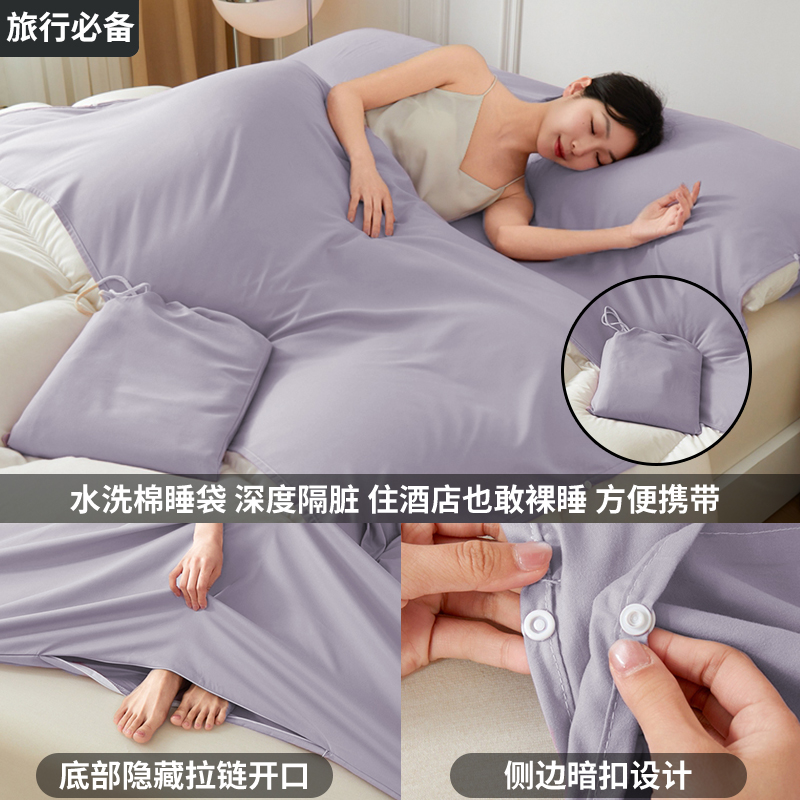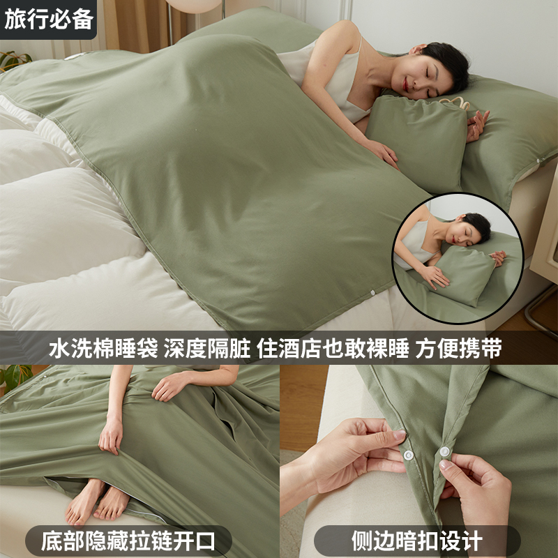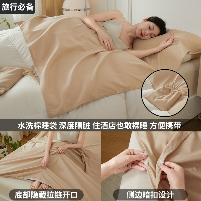 > 高端轻奢JK旅行酒店隔脏睡袋床单被套便携式四件套出差一体旅睡宝