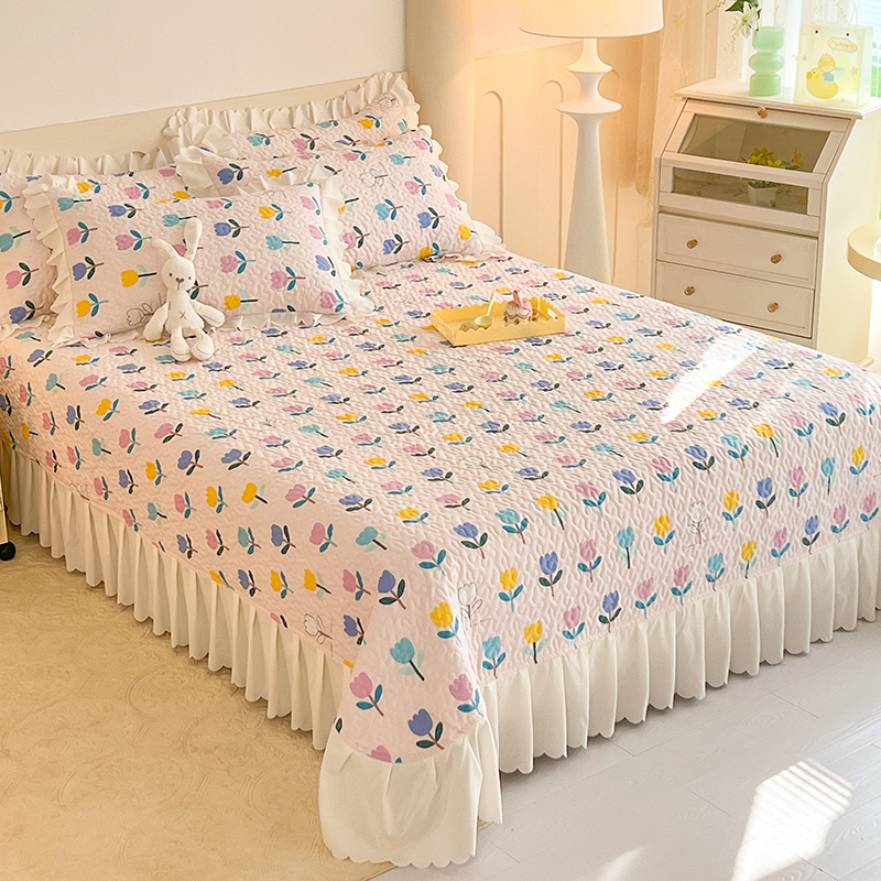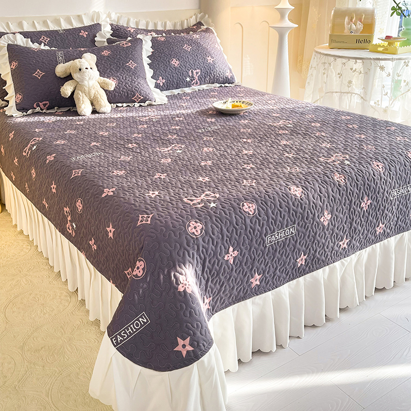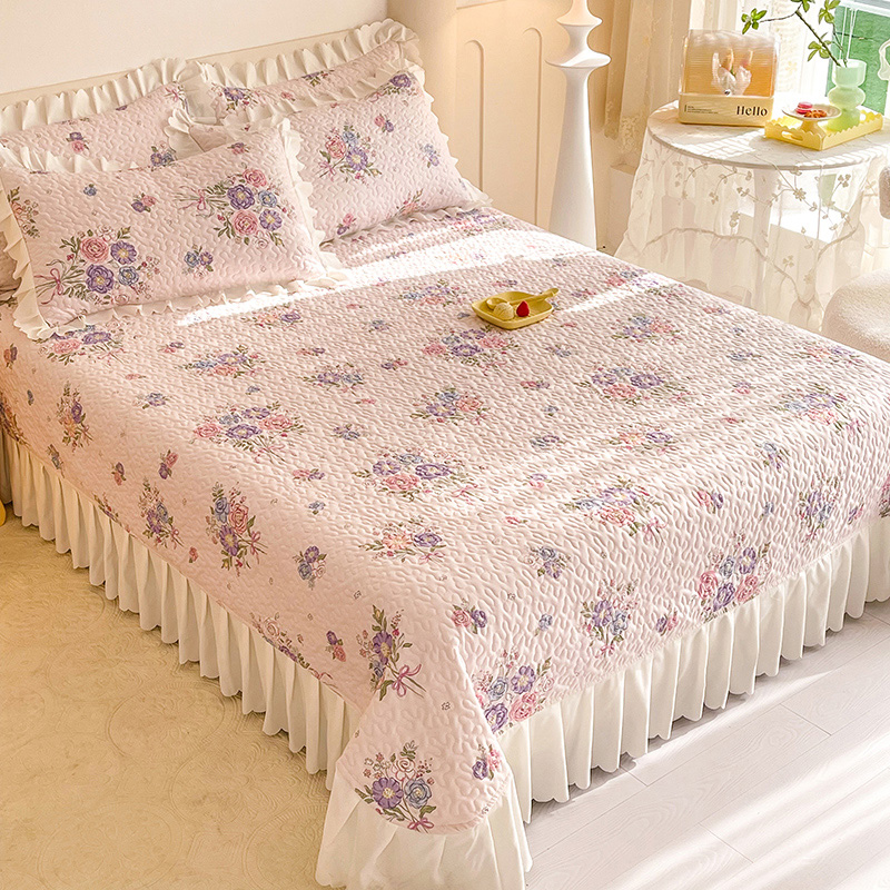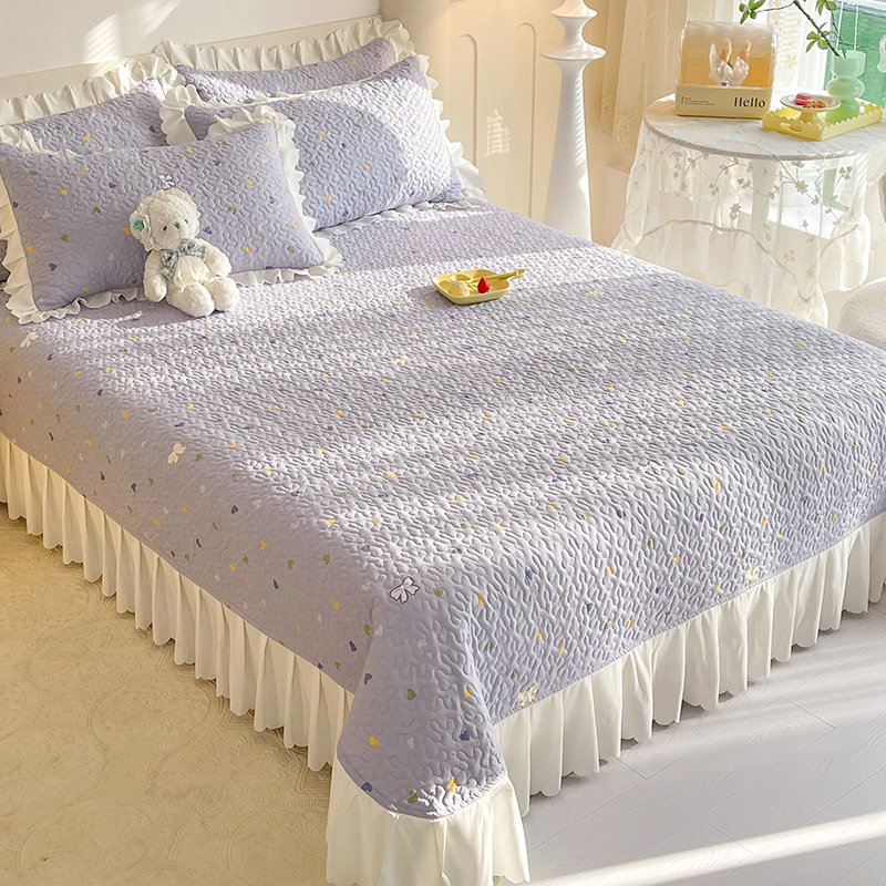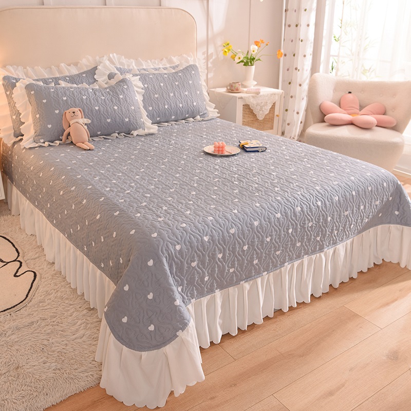 > 高端轻奢JK韩式公主风夹棉床盖三件套四季潮通用水洗棉榻榻米床单