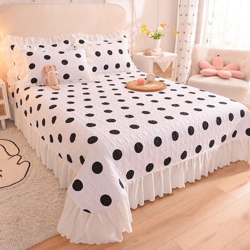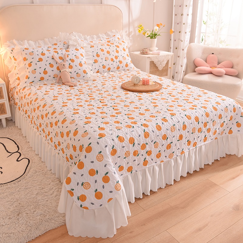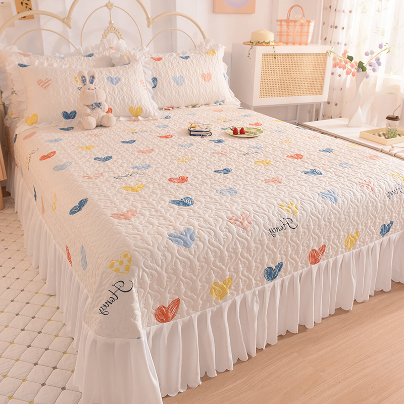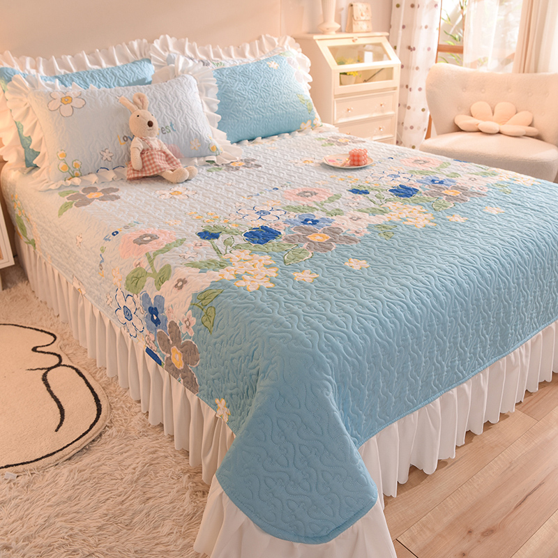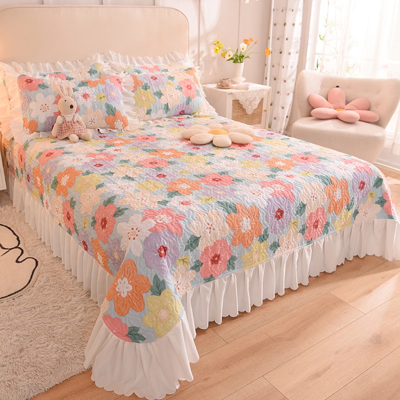> 高端轻奢JK韩式公主风夹棉床盖三件套四季潮通用水洗棉榻榻米床单