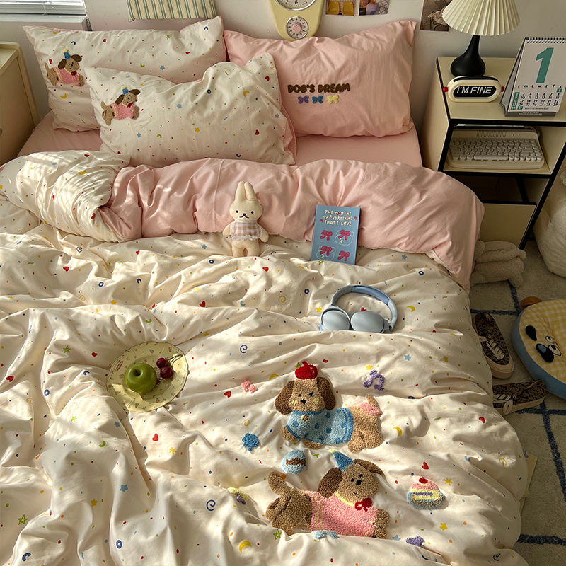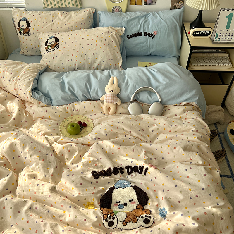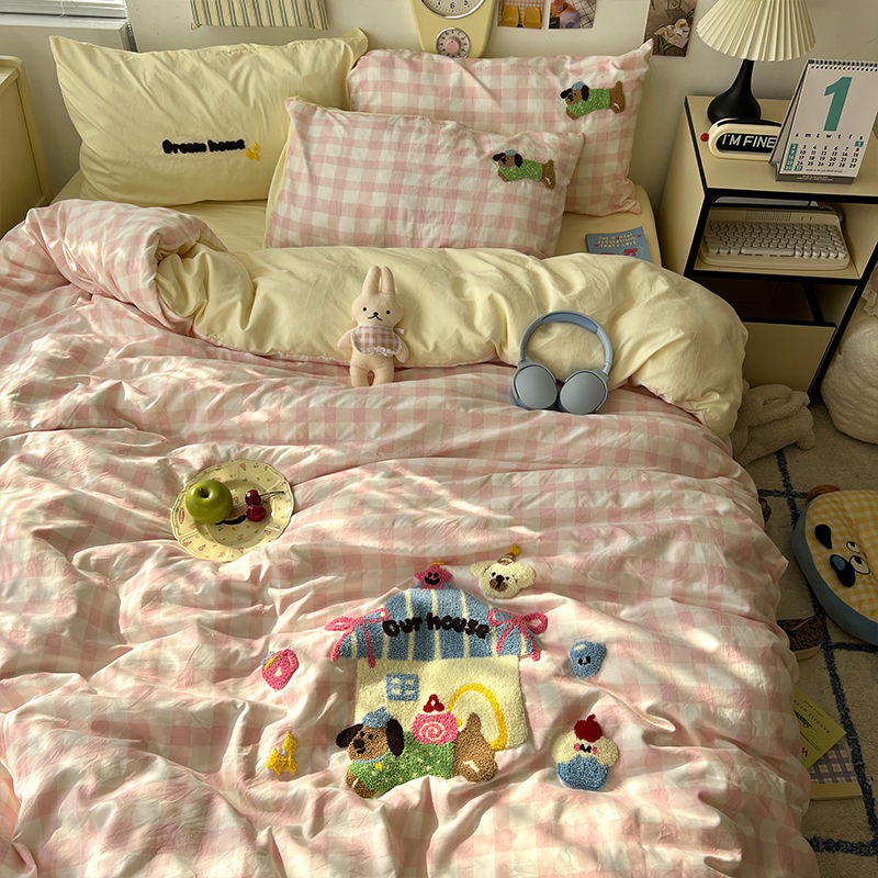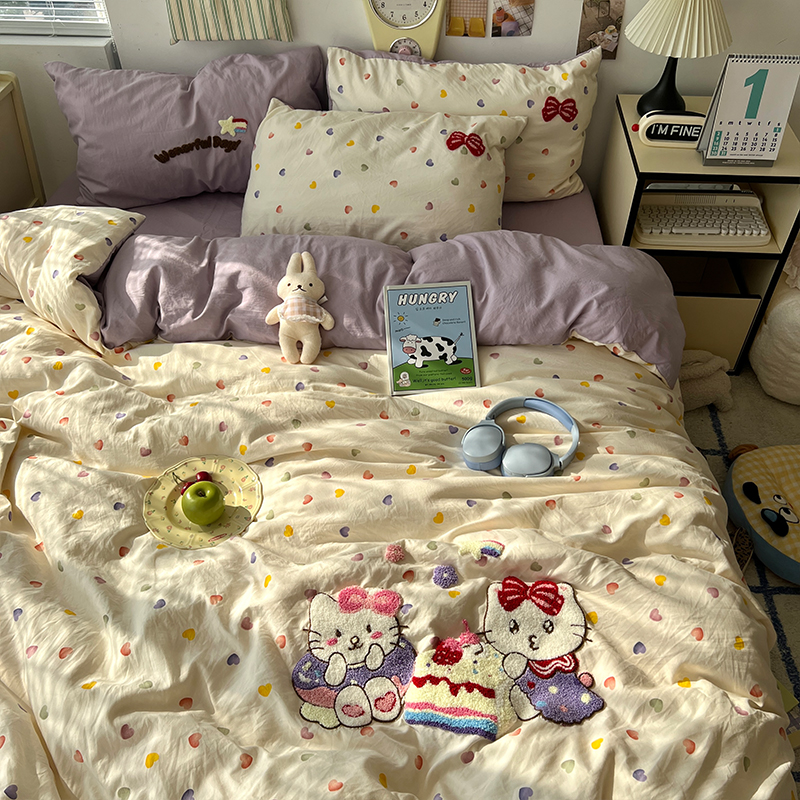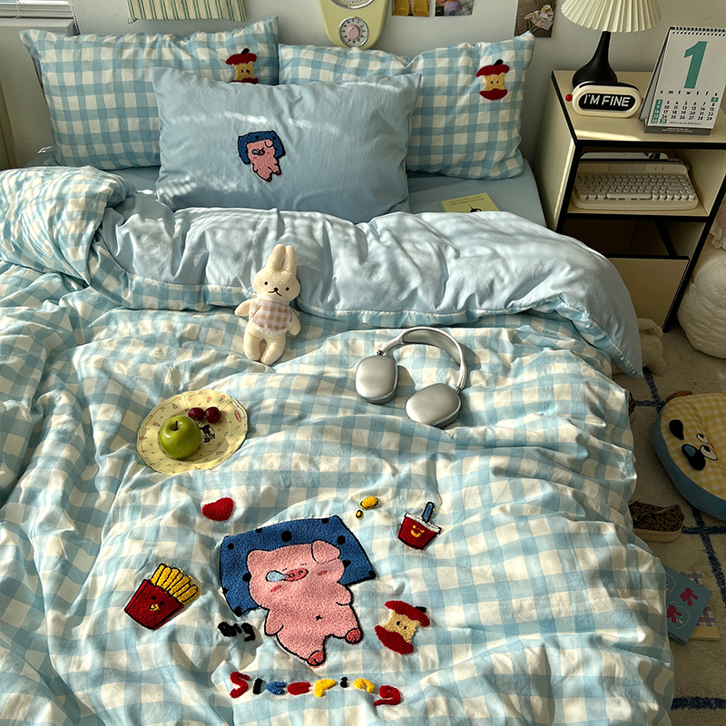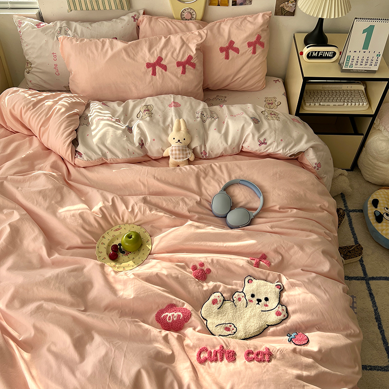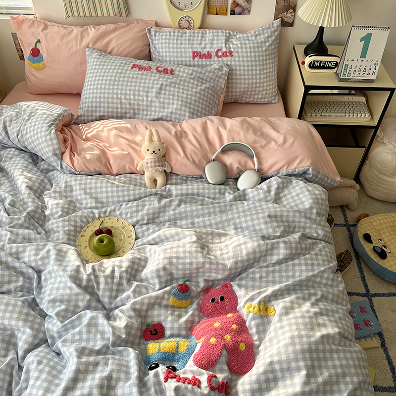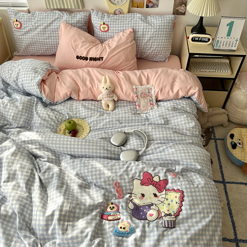 > 高端轻奢JK新款床上用品四件套纯棉全棉床单被套被罩床笠学生宿舍