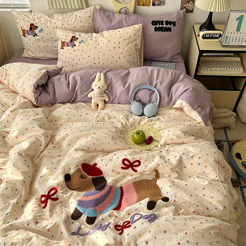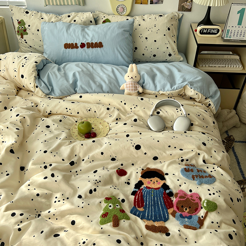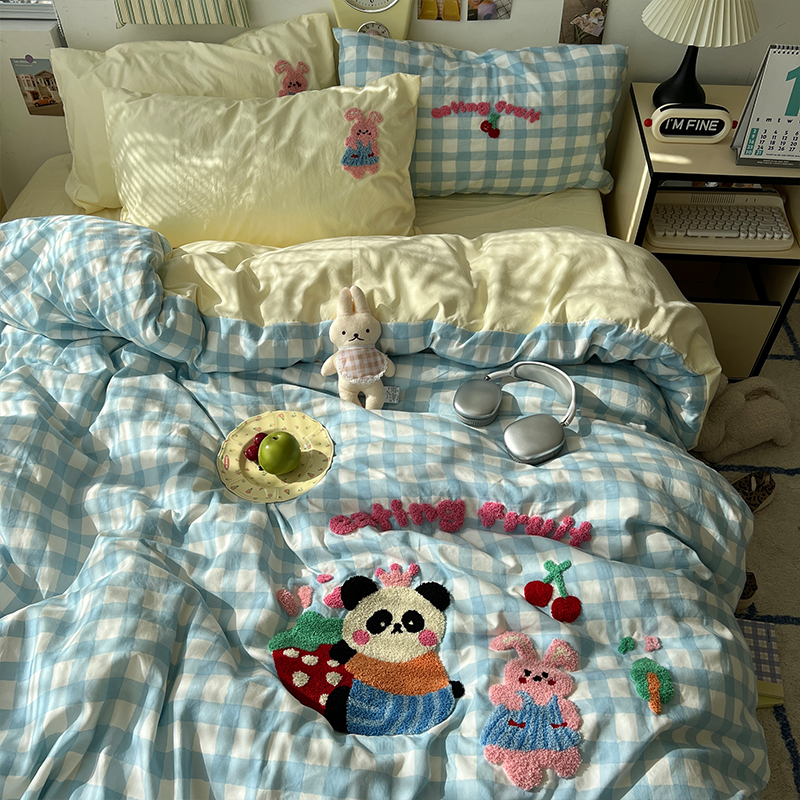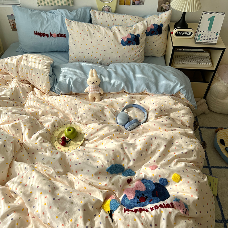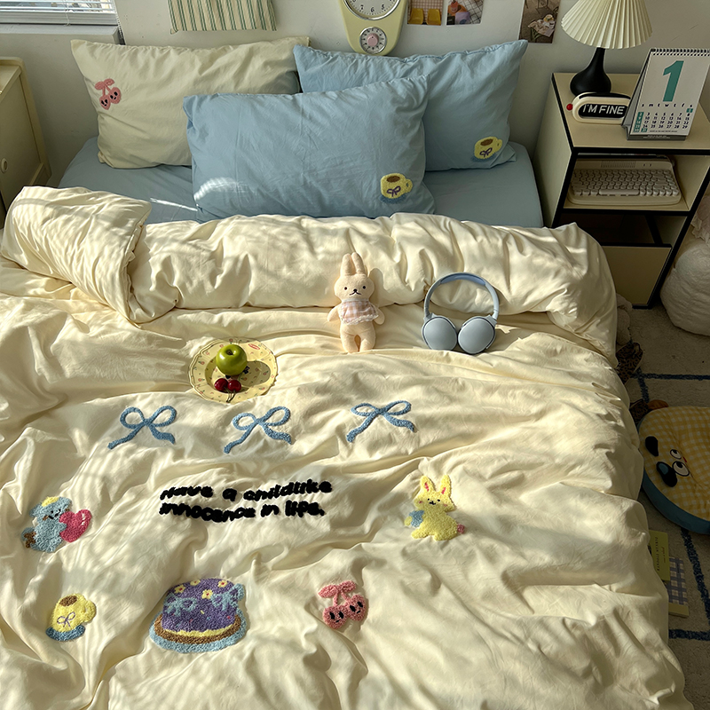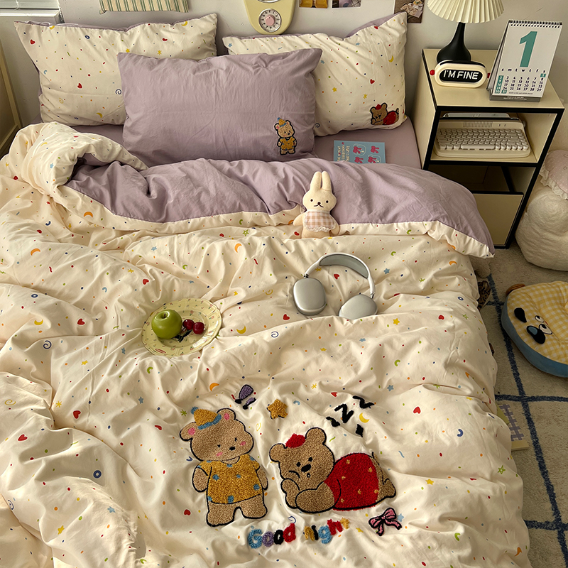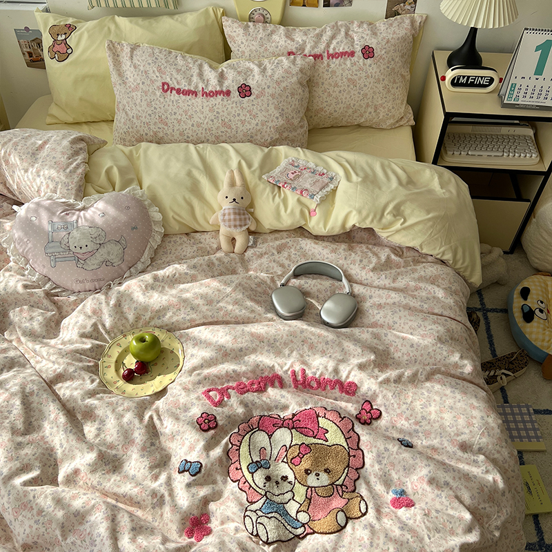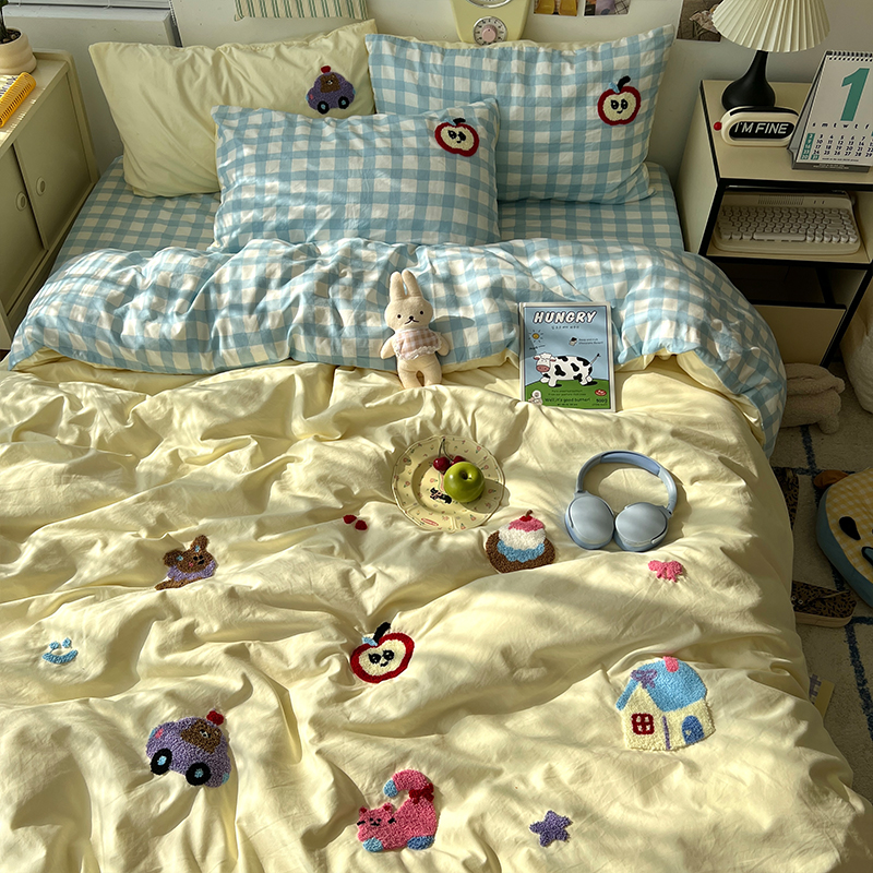 > 高端轻奢JK新款床上用品四件套纯棉全棉床单被套被罩床笠学生宿舍