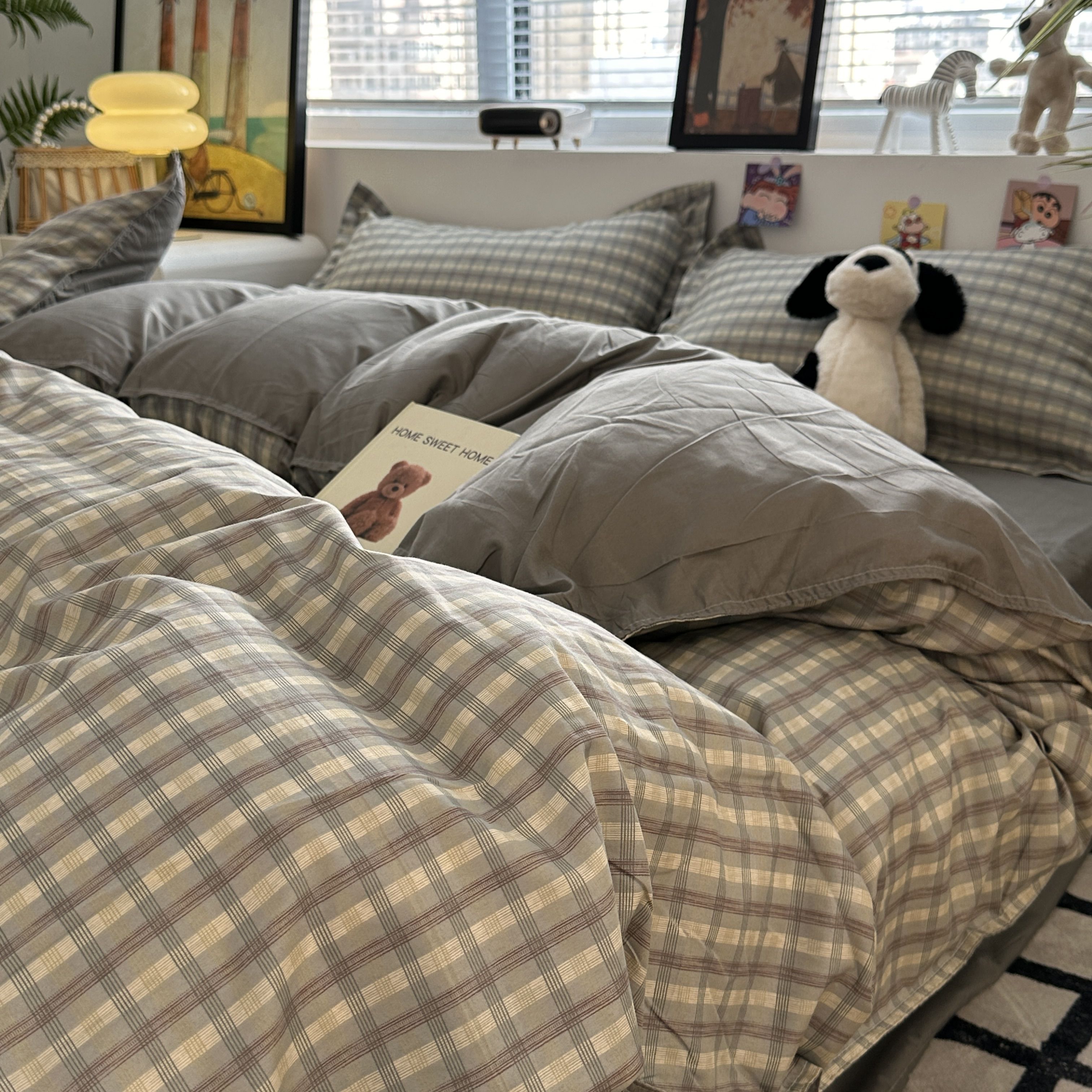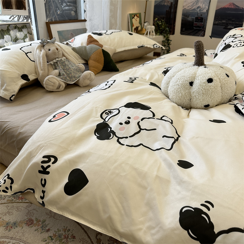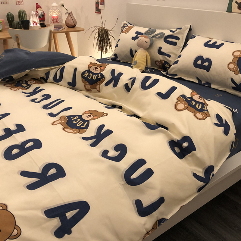 > 高端轻奢JK床单人被罩学生宿舍被套四件套枕套床品床上用品纯水洗