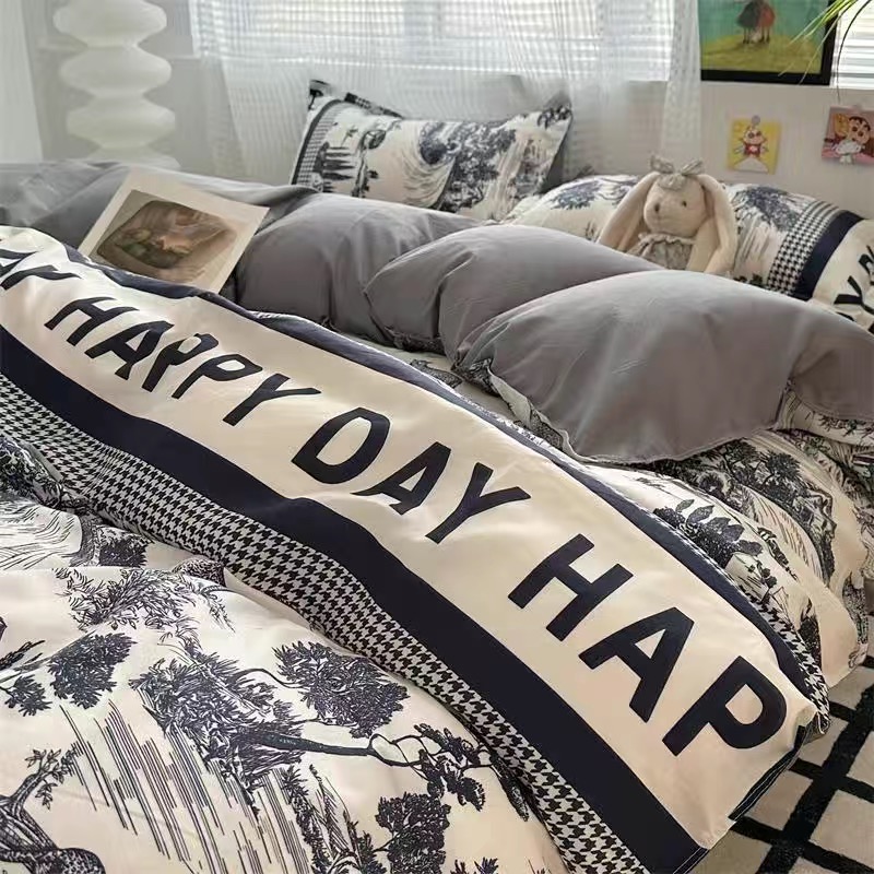 高端轻奢JK床单人被罩学生宿舍被套四件套枕套床品床上用品纯水洗
