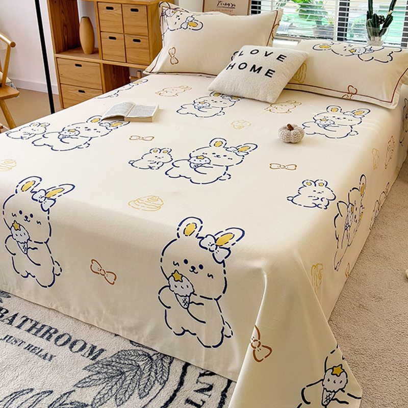 > 高端轻奢JK加厚磨毛纯棉床单单件全棉冬季单人卡通被单榻榻米枕套