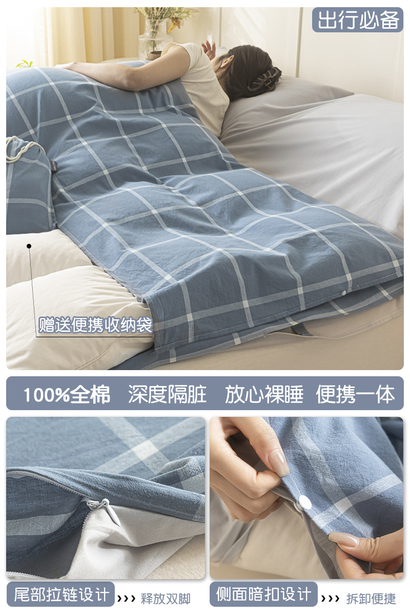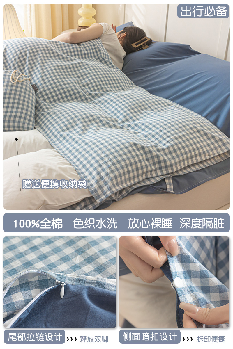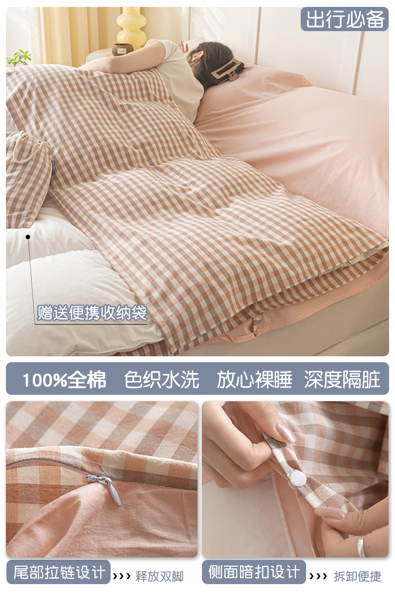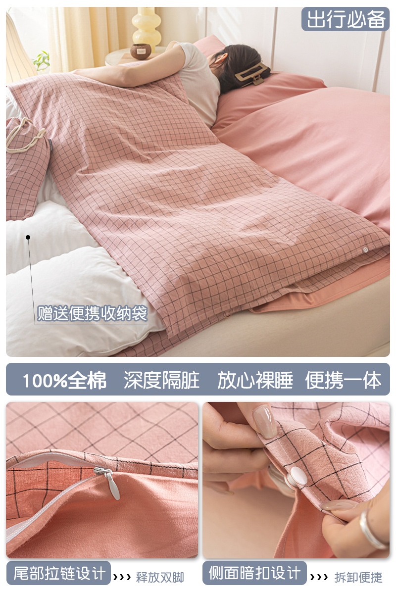 > 高端轻奢JK新疆棉酒店隔脏睡袋全棉纯棉旅行床单被套便携式成人潮
