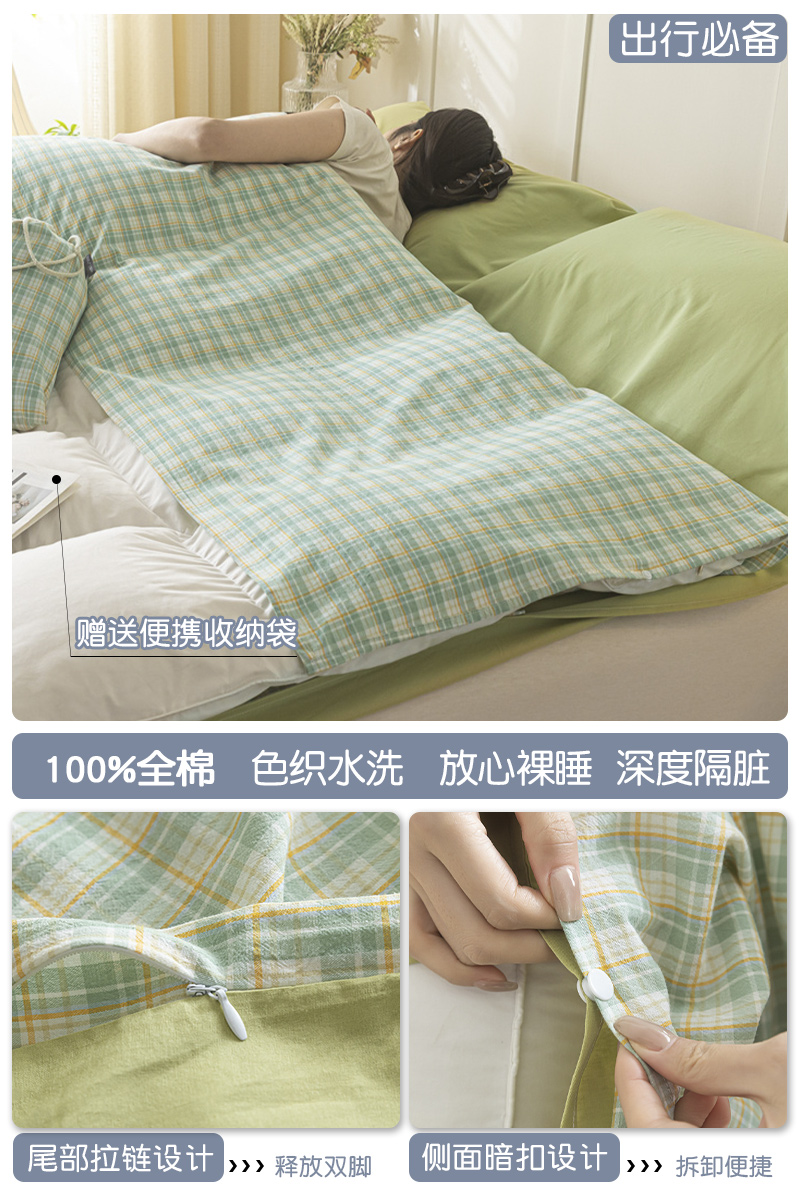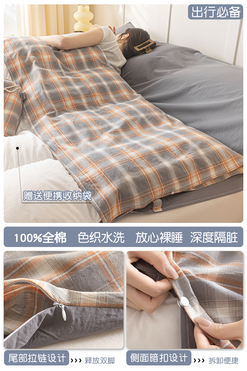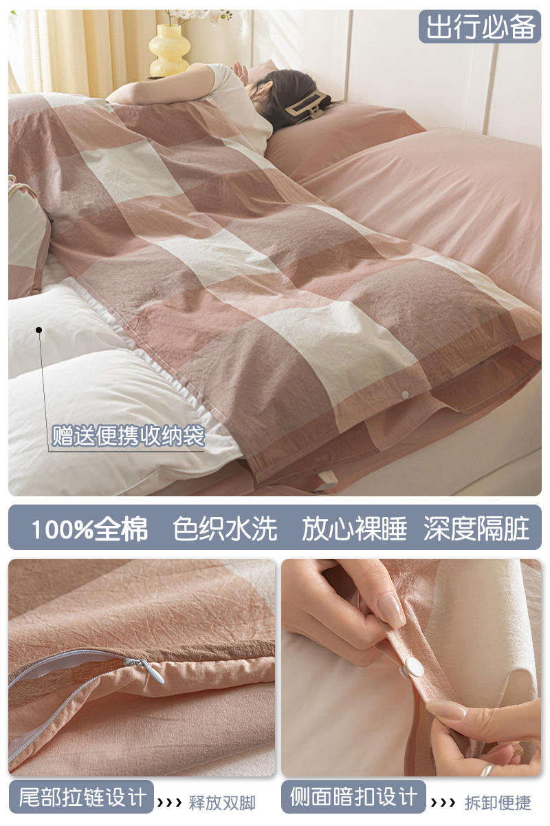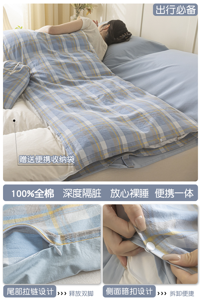 > 高端轻奢JK新疆棉酒店隔脏睡袋全棉纯棉旅行床单被套便携式成人潮