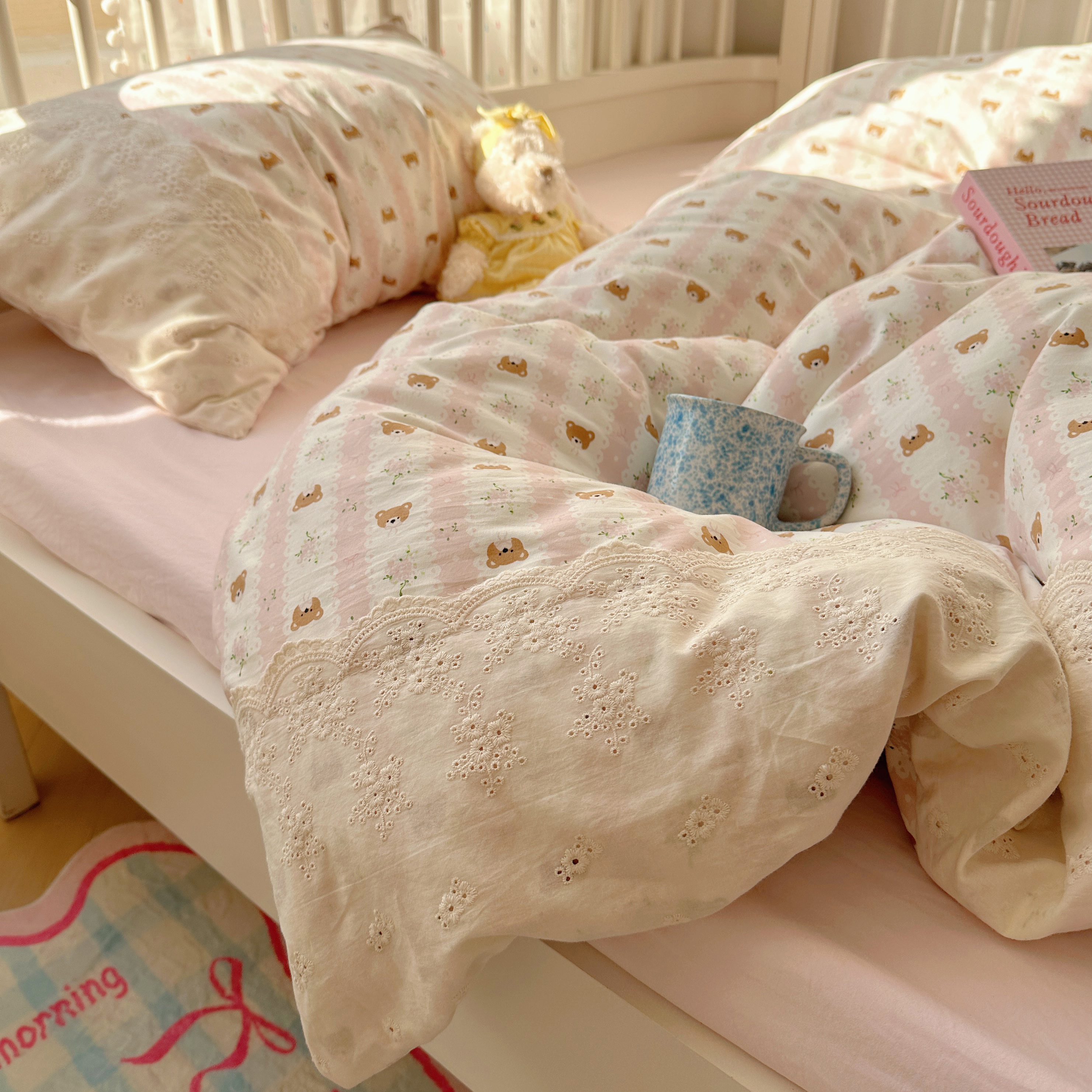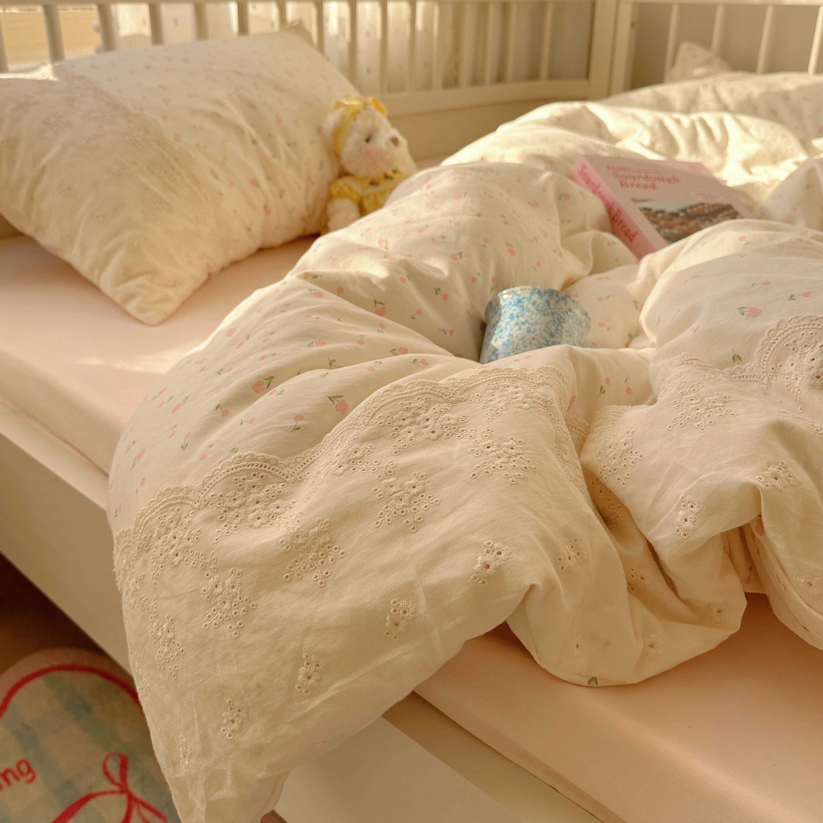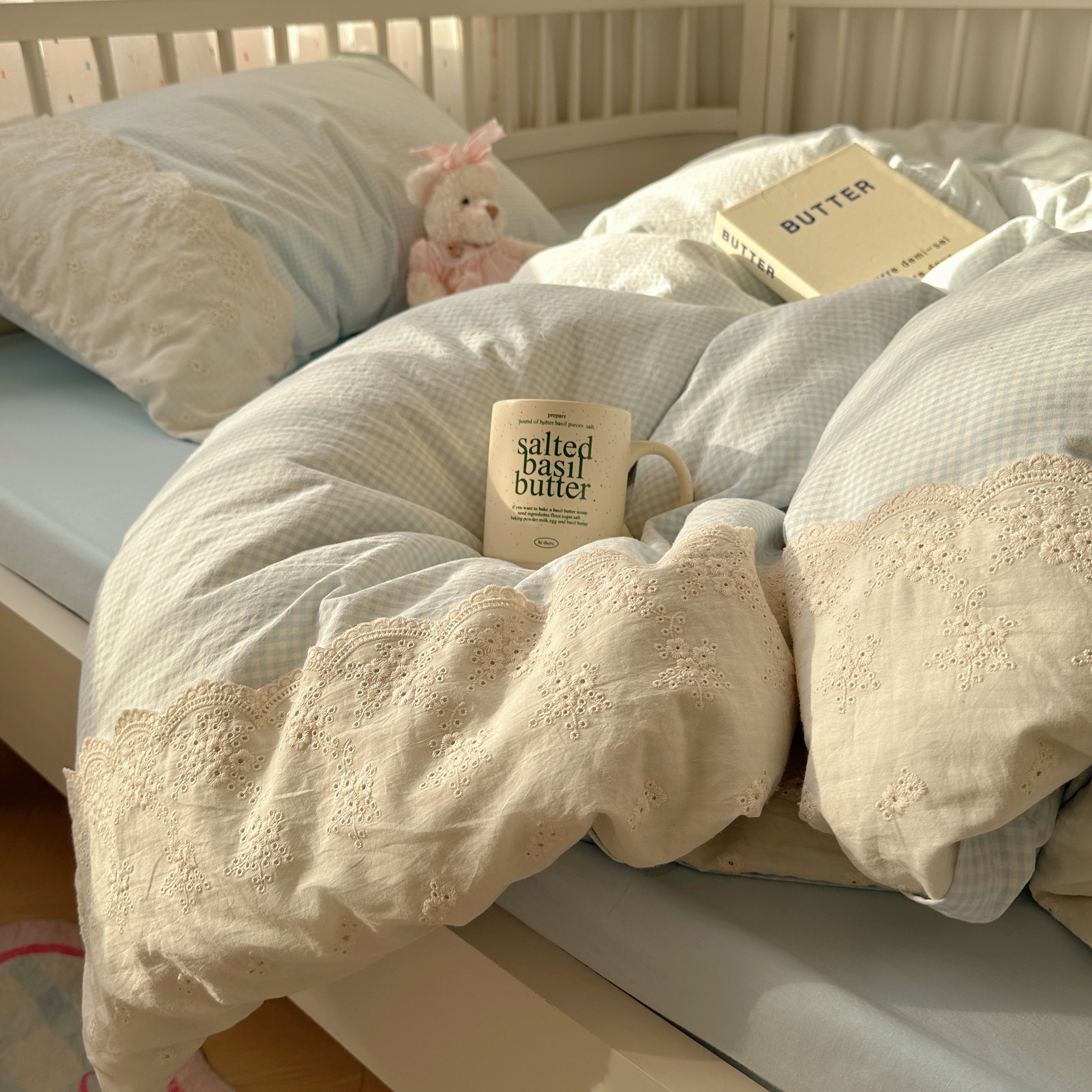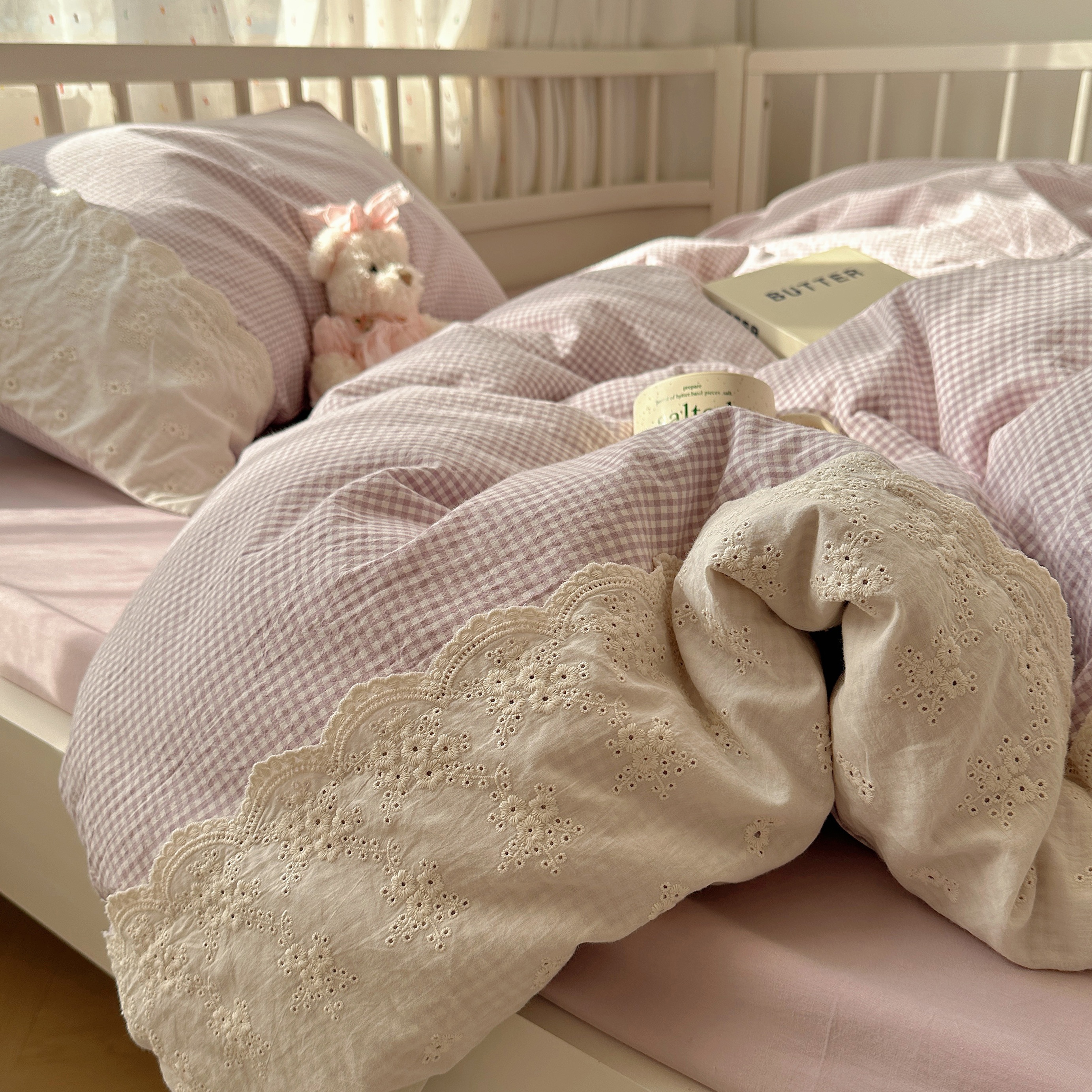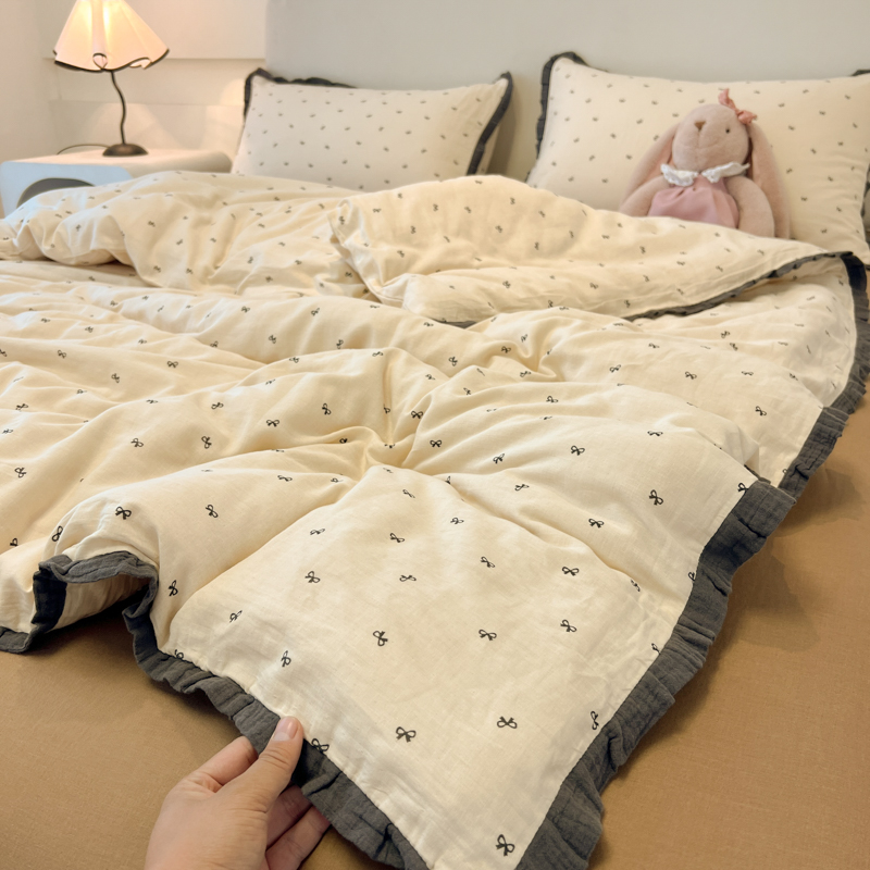 > 高端轻奢JK法式床上用品四件套纯棉全棉双层纱被套床单夏床笠宿舍