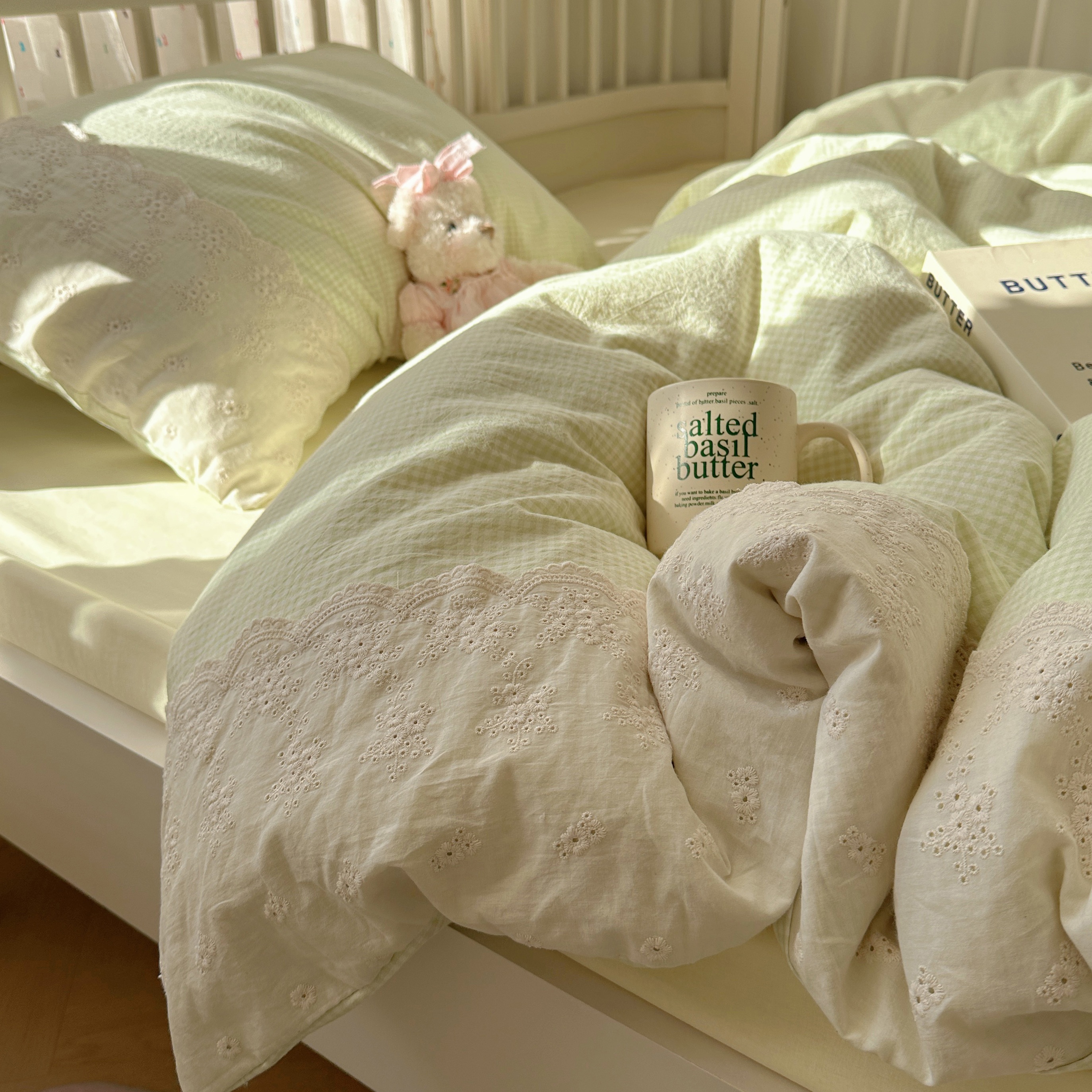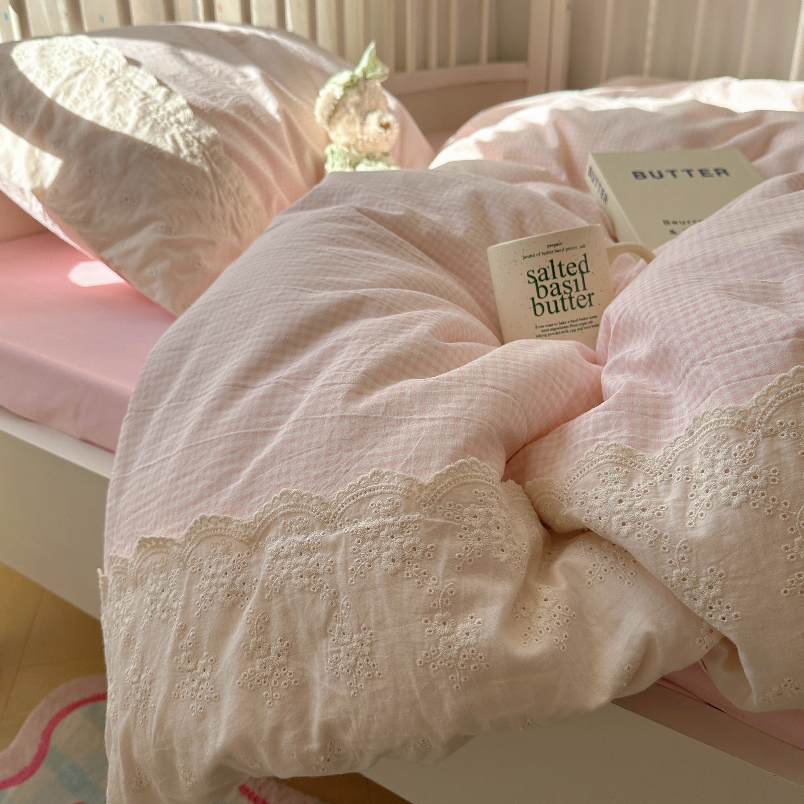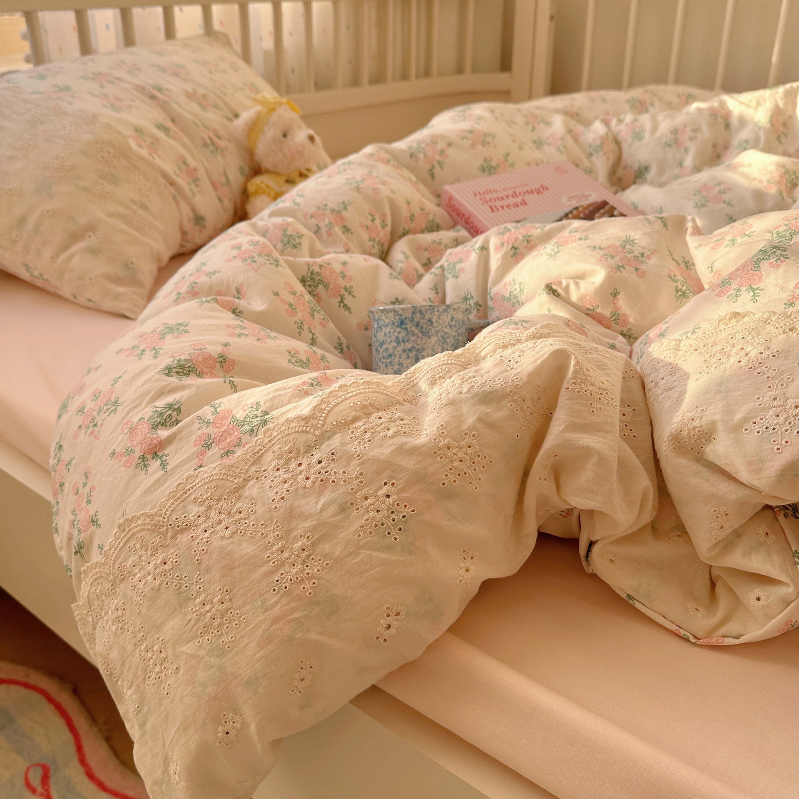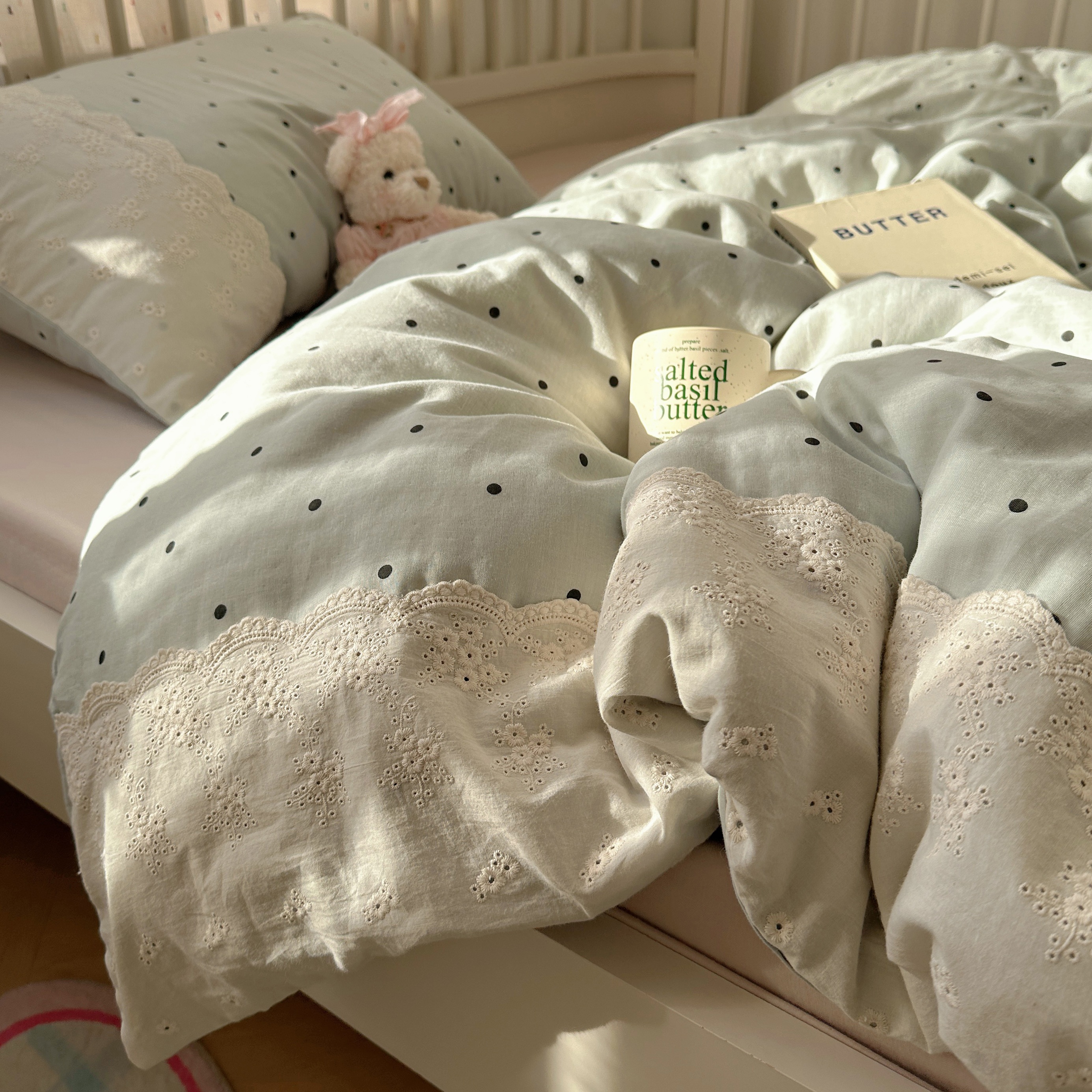 > 高端轻奢JK法式床上用品四件套纯棉全棉双层纱被套床单夏床笠宿舍
