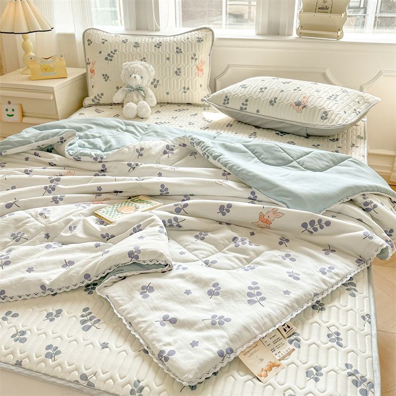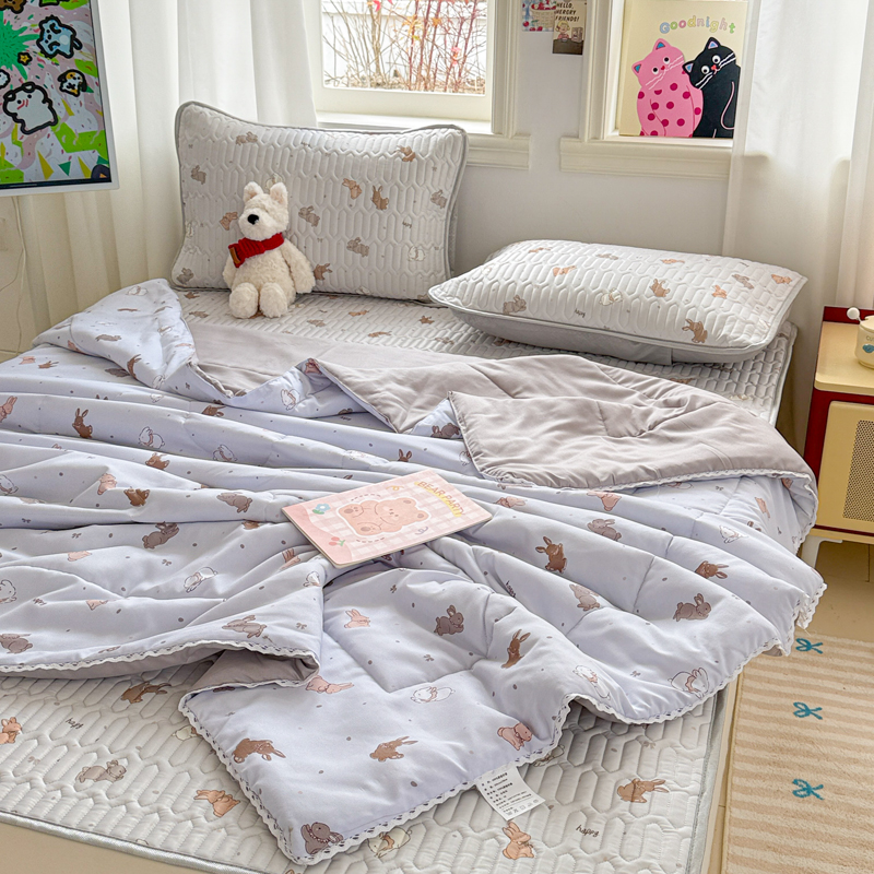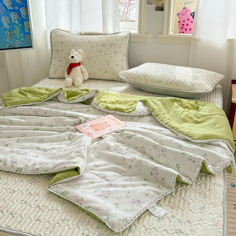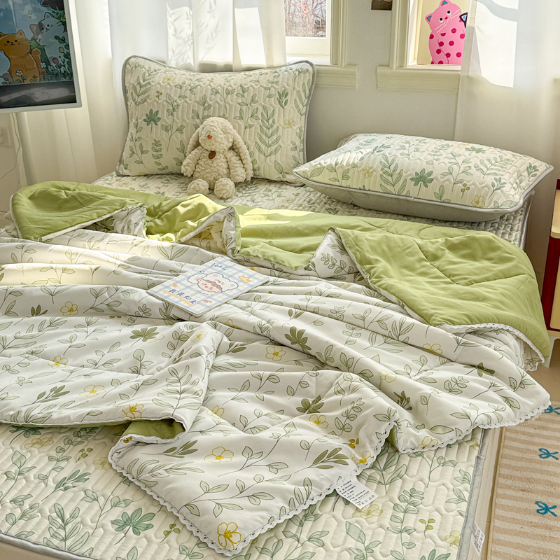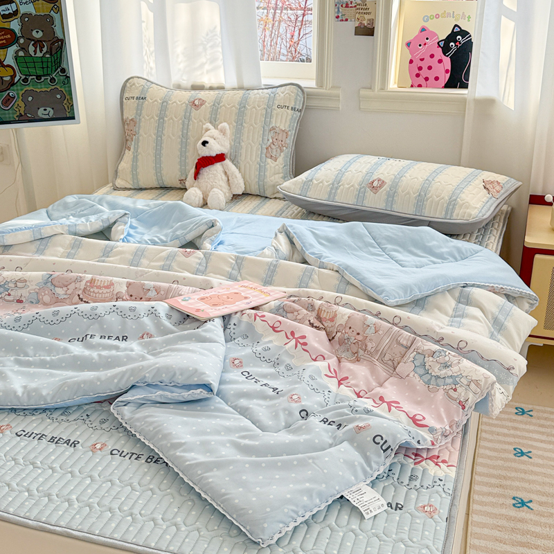 高端轻奢JK水洗棉空调被四件套冰丝乳胶凉席夏凉被可水洗床单被套
