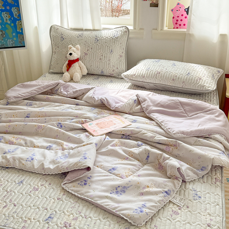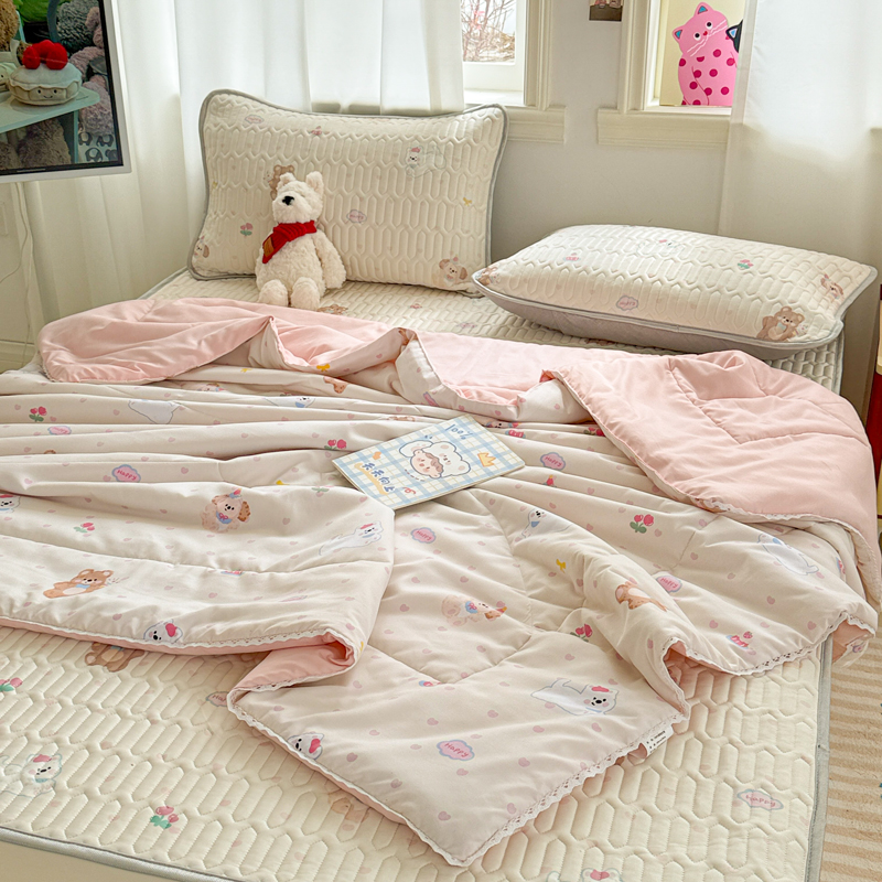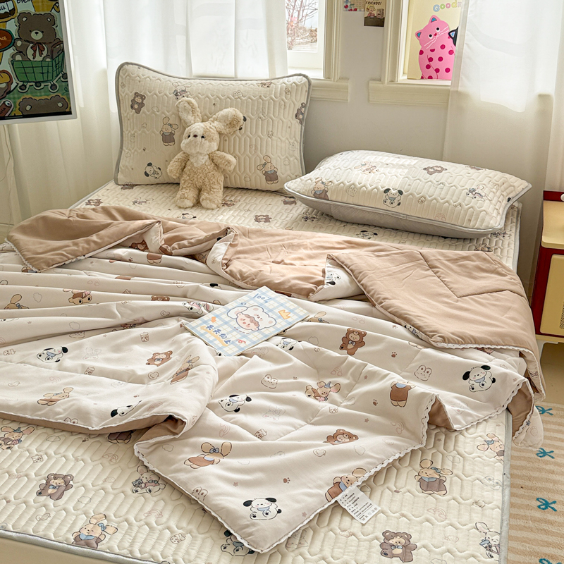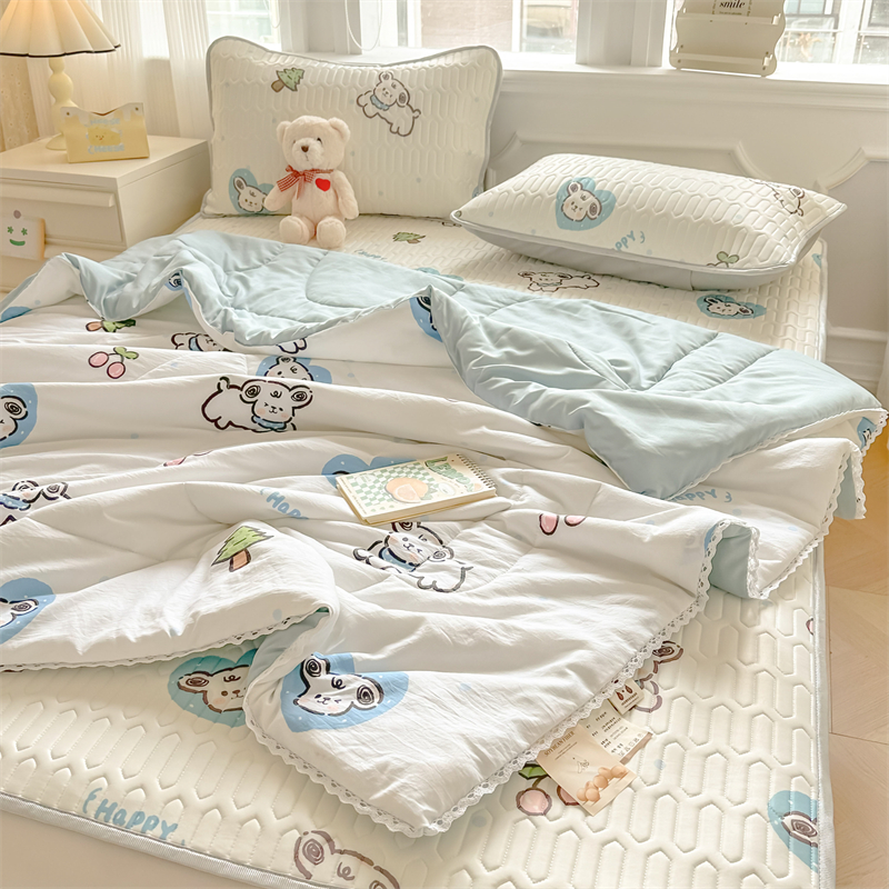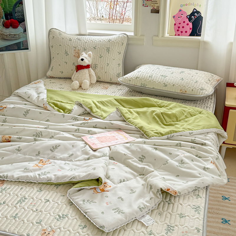 高端轻奢JK水洗棉空调被四件套冰丝乳胶凉席夏凉被可水洗床单被套