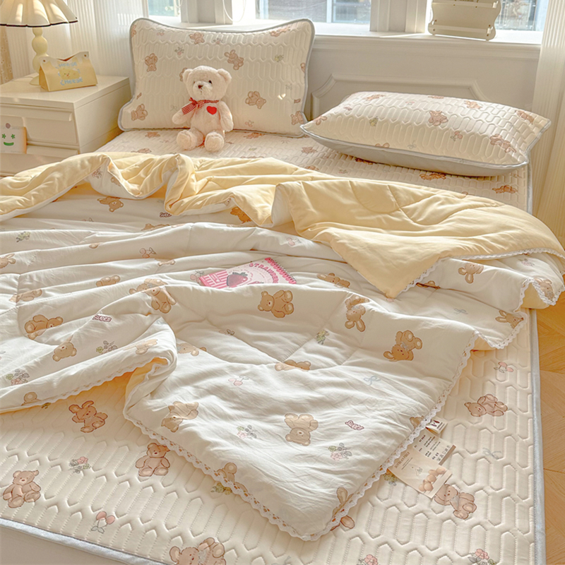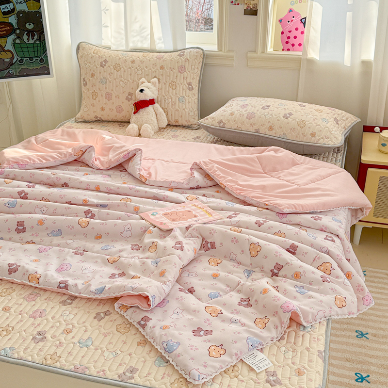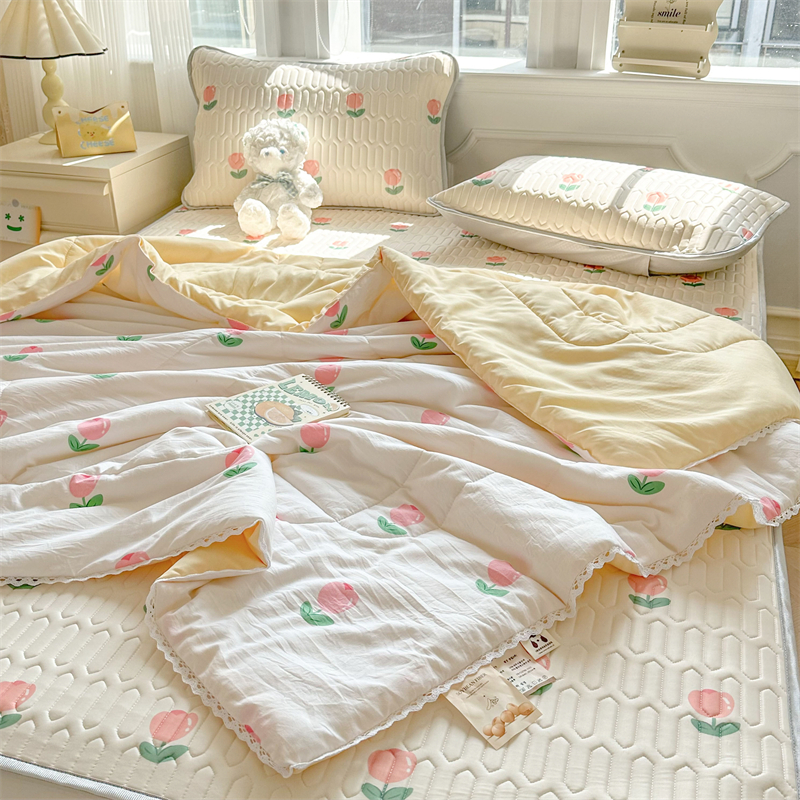 > 高端轻奢JK水洗棉空调被四件套冰丝乳胶凉席夏凉被可水洗床单被套