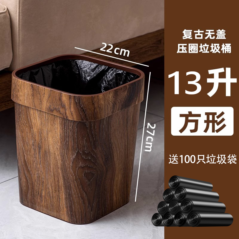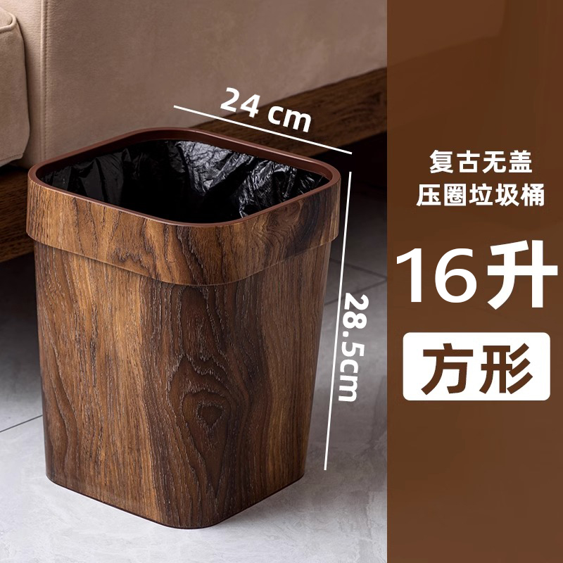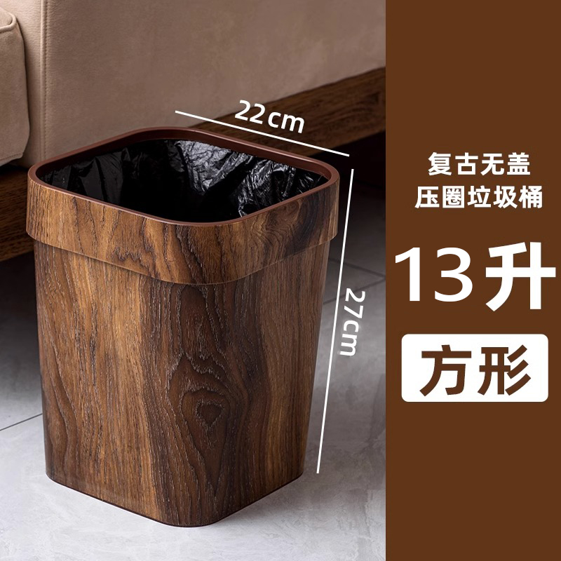 > 垃圾桶商用仿木纹家用厨房厕所卫生间创意客厅卧室办公室大号轻奢
