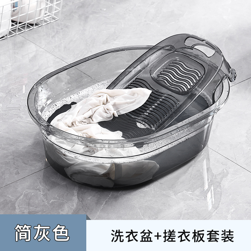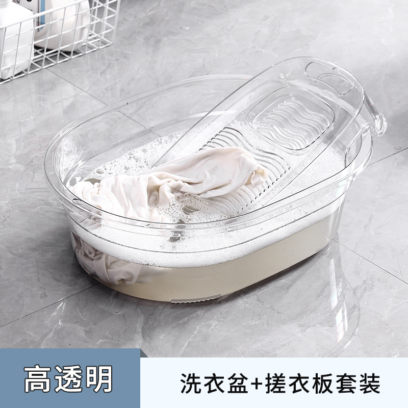 > 洗衣盆透明塑料盆子家用带搓衣板一体加厚特大号泡脚加深洗澡盆