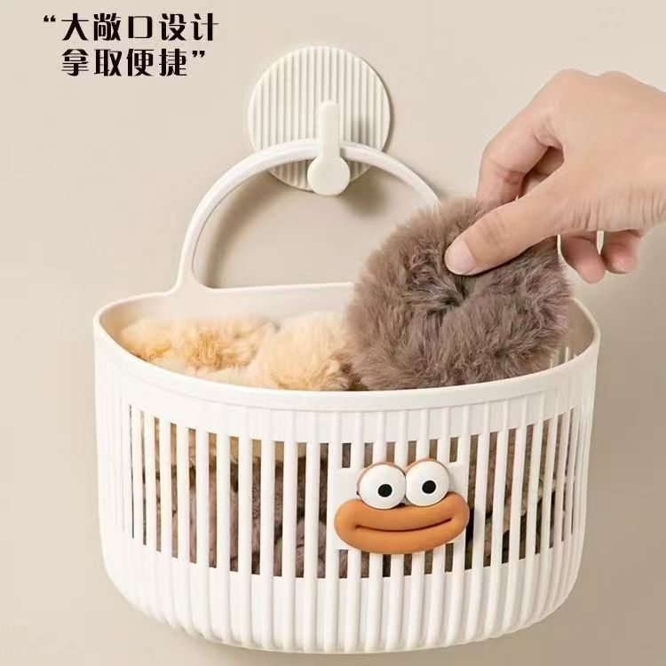 > 可爱壁挂式收纳篮多功能厨房浴室卫生间小挂篮免打孔挂墙置物架子