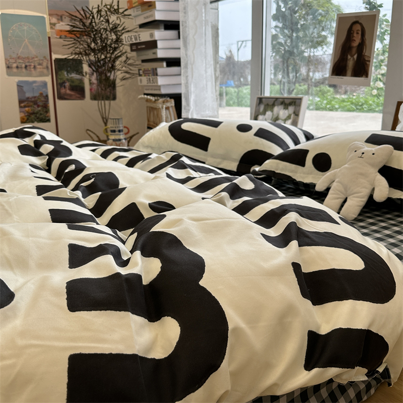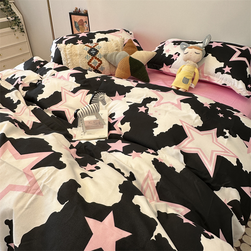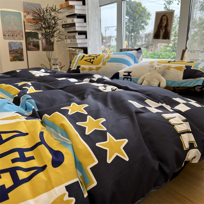 > 高端轻奢JK二次元火影忍者黑色水洗棉四件套被套男床单宿舍三件套
