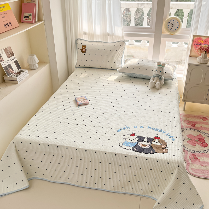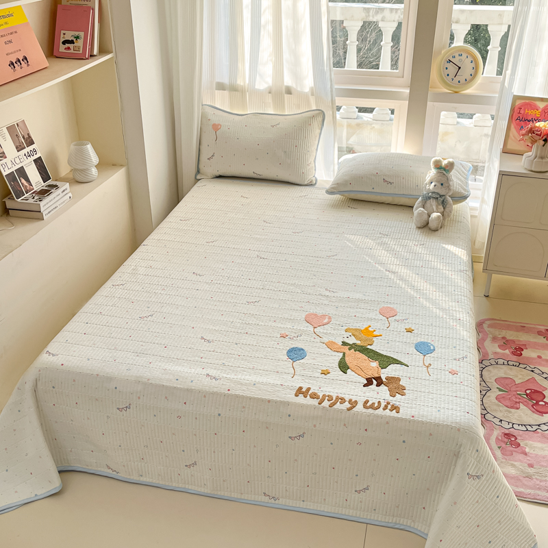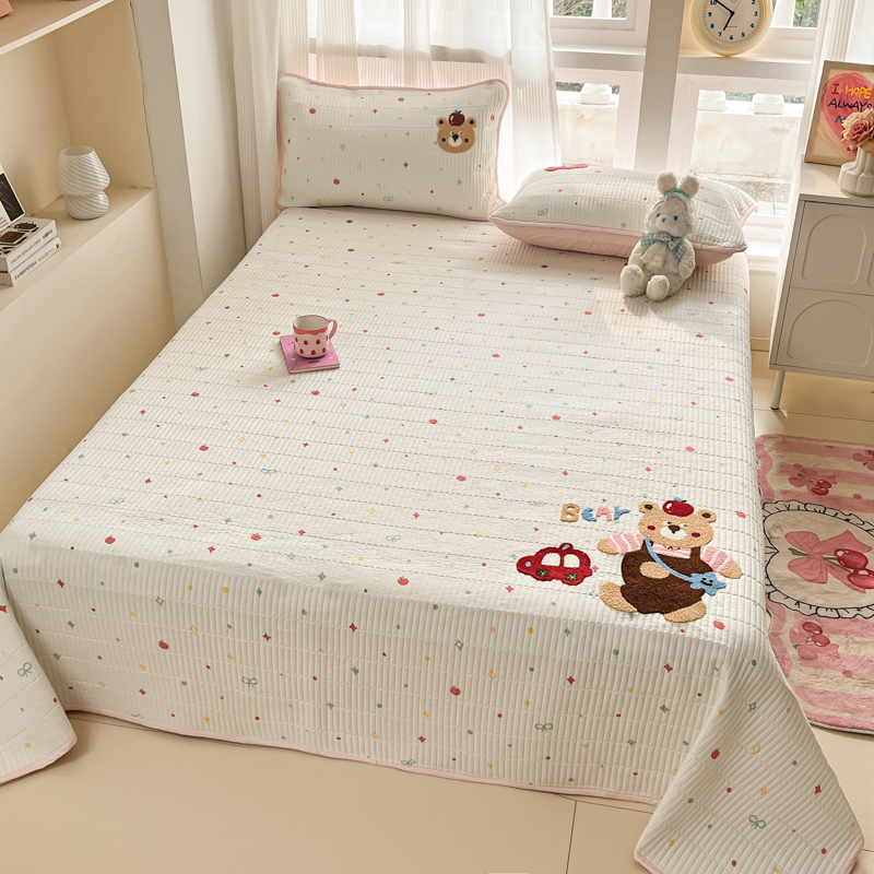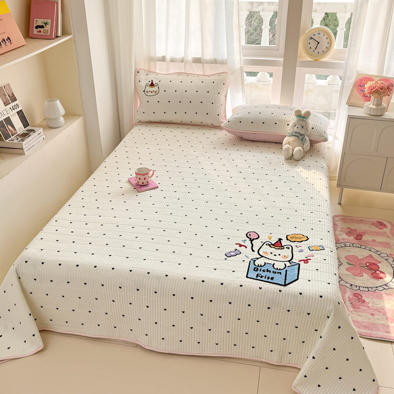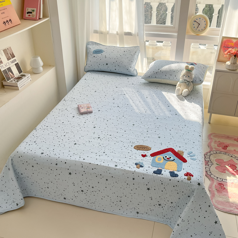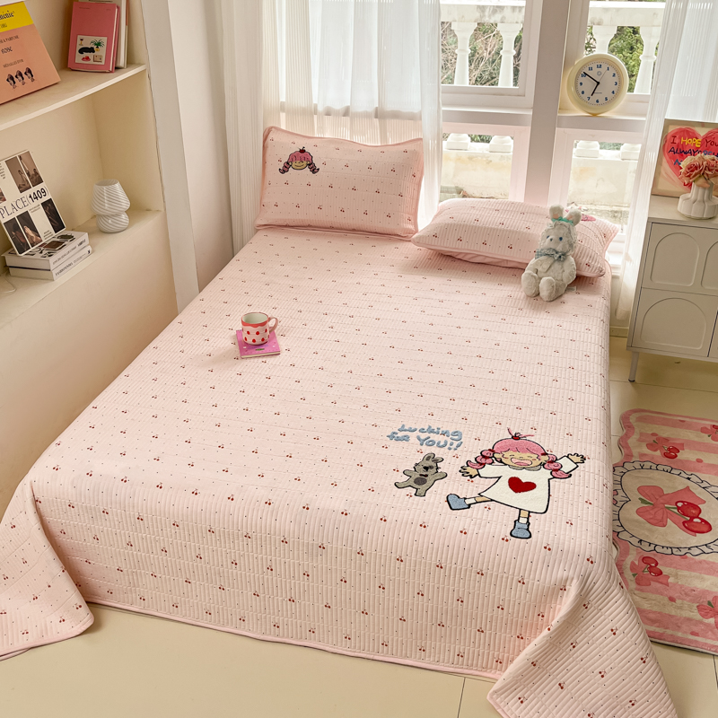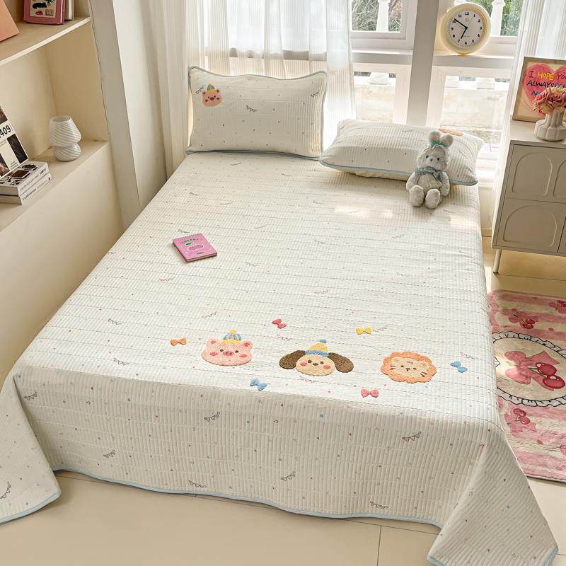 > 高端轻奢JK卡通毛巾绣水洗棉床盖新款家用榻榻米炕盖单件夹棉床单